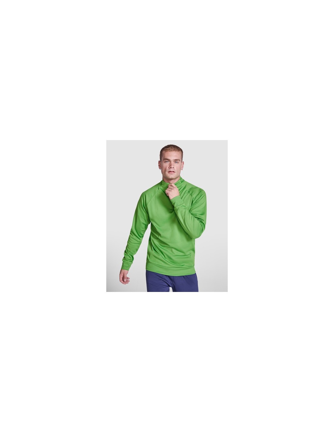 Sudadera de manga ranglán, con Interior perchado, cuello con media cremallera y cubrecosturas de refuerzo en su interior a tono. Parte posterior del cuello, puños y bajo en canalé 1x1. Sudadera para combinar con pantalón NEAPOLIS.*Etiqueta removible.*Tejido técnico.*Duración en catálogo 3 años. Composition : 100% poliéster, 200 g/m².