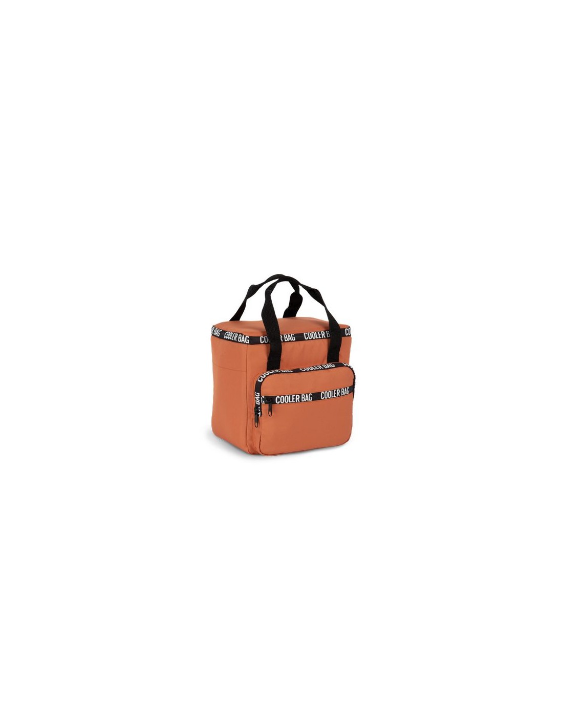 Bolsillo delantero, ideal para la personalización. Diseño con texto de tendencia: «cooler bag». Confección a partir de poliéster reciclado para un acabado a la moda y sostenible. 100 % poliéster. Bolsa isotérmica confeccionada con 50% poliéster reciclado. Bolsillo delantero 100 % personalizable. Cierres rápidos con cinta serigrafiada "cooler bag".