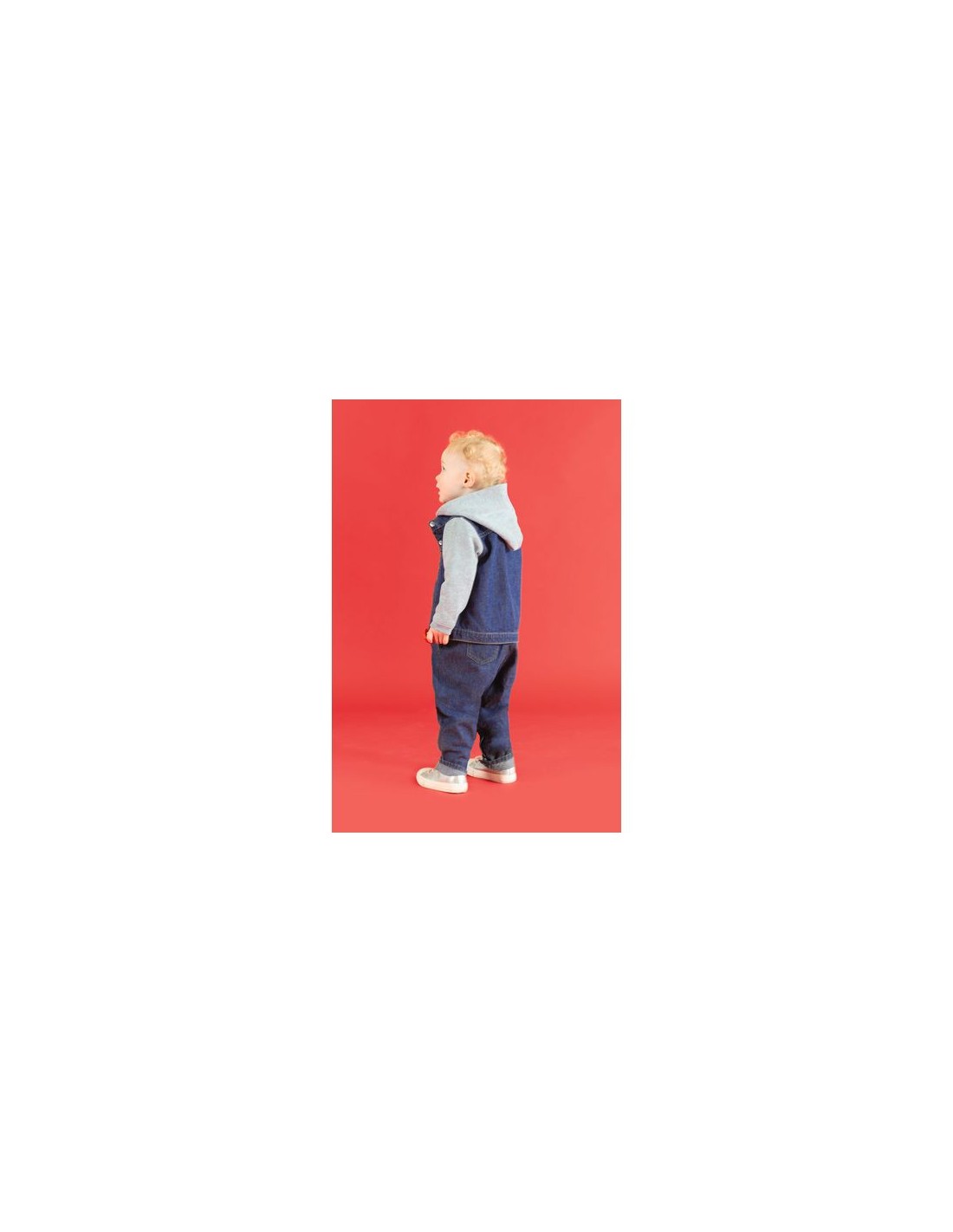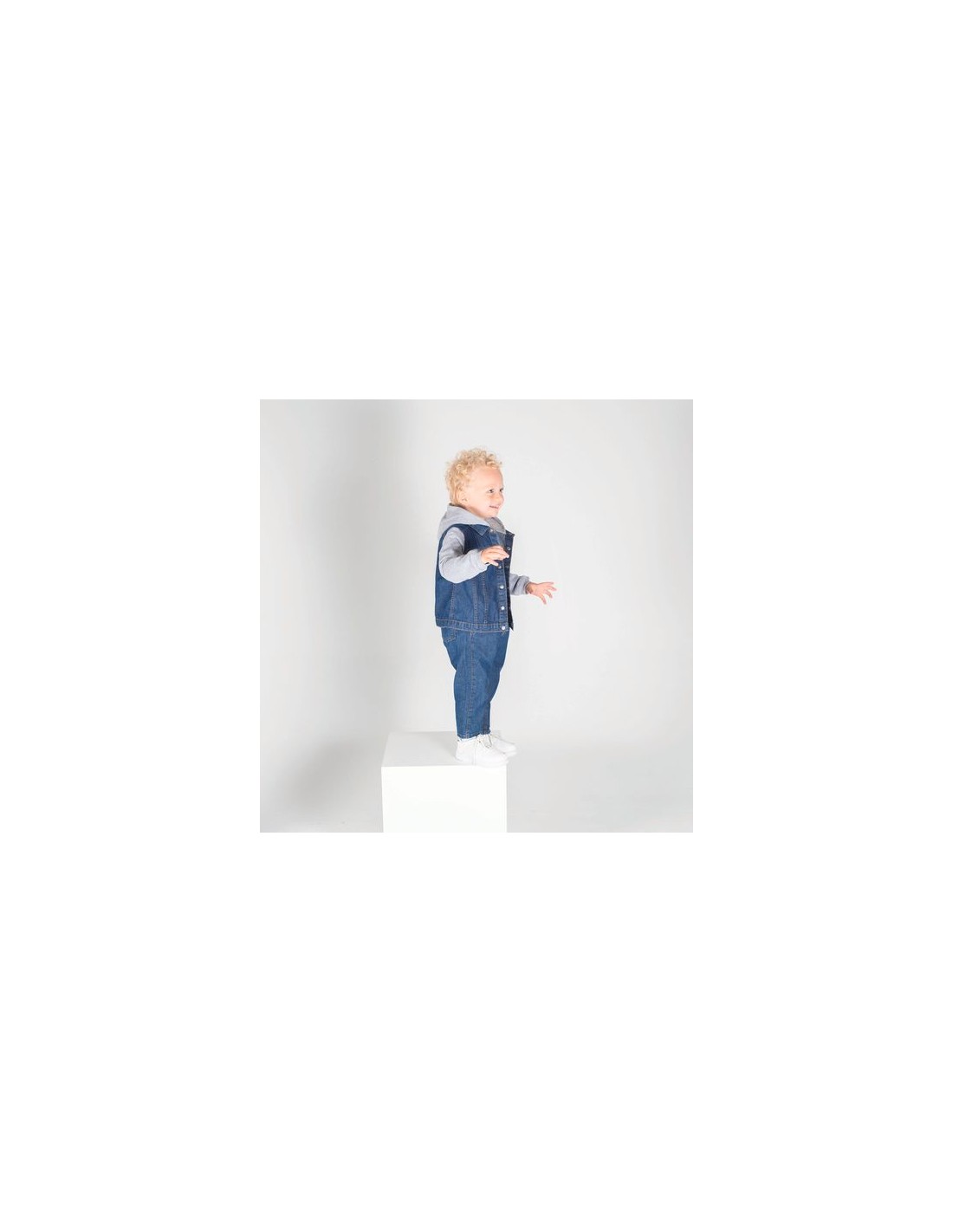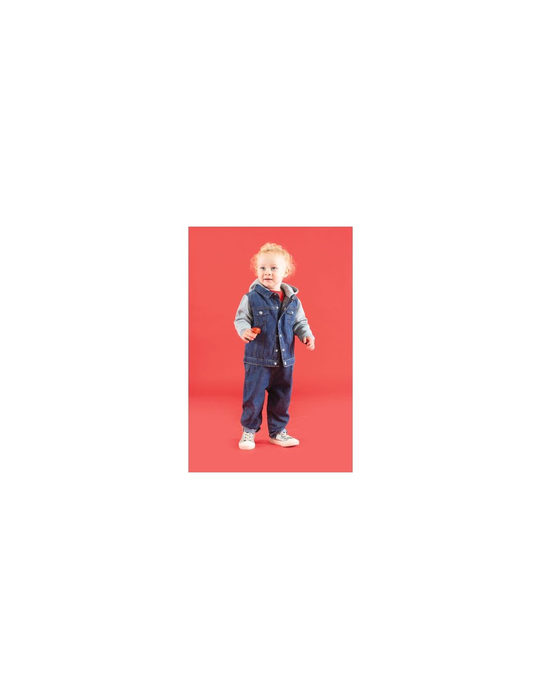 Bimaterial: suavidad y resistencia. Ideal para el entretiempo. Botones a presión YKK. Denim: 100% algodón. Capucha y mangas: 71% algodón/ 23% poliéster. Chaqueta vaquera con capucha y mangas en tejido sudadera. Cierre con botones a presión YKK. Dos bolsillos delanteros con solapa.