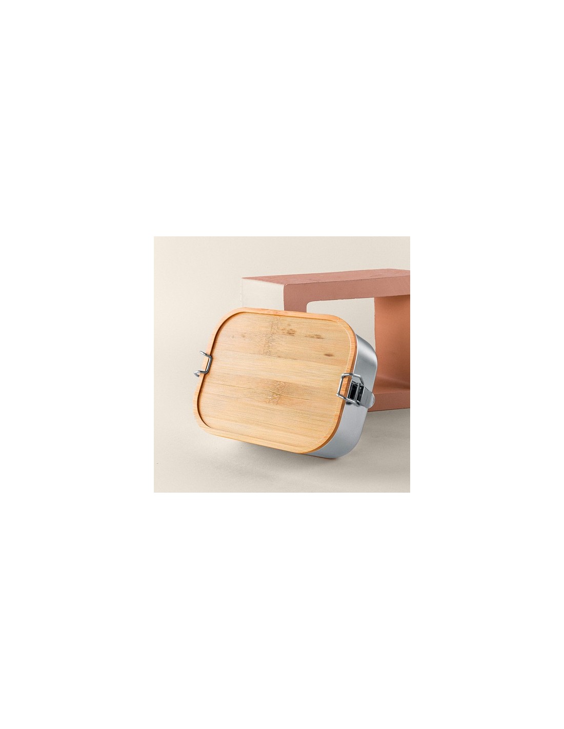 Fiambrera acero inoxidable de 800 ml de capacidad y tapa de bambú con enganche. Material : Acero Inoxidable / Bambú Tecnica De Marcaje : CODIGO C SERIGRAFIA A 1 COLOR, LASER MADERA 4