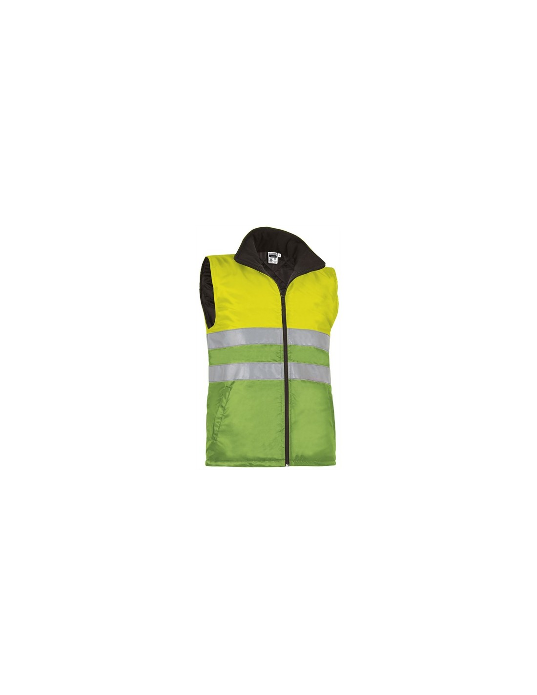 Chaleco acolchado de Alta Visibilidad.Confeccionado en tejido impermeable Canvas exterior, forro interior liso y relleno acolchado que aporta retención térmica, incluye dos cintas retro-reflectantes cosidas en torso y espalda para mayor seguridad.Prenda certificada como EPI de Categoría II de Alta Visibilidad en base a las normas 13688 y 20471, clase 1, con duración máxima de 25 lavados.Cuello alto con interior polar y cierre de cremallera entera para mayor calidez y confort.Dos bolsillos oblicuos en cintura con interior polar y uno interior, todos con cierre de cremallera, para tener todo accesible.Métodos idóneos de marcaje: serigrafía, transfer, vinilo, bordados, cosidos.Ideal como ropa laboral y uniformes de trabajo. Composición : exterior: 90% poliester 10% poliuretano - interior: 100% poliester