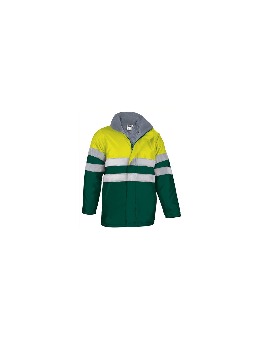 Parka impermeable de Alta Visibilidad con capucha.Confeccionada en tejido impermeable Canvas exterior, forro interior liso y relleno acolchado que aporta retención térmica y confort, costuras termo-selladas que evitan filtraciones de agua, incluye dos cintas retro-reflectantes cosidas en torso, espalda y mangas para mayor seguridad.Prenda certificada como EPI de Categoría II de Alta Visibilidad, clase 3 para los modelos monocolor y clase 1 para los modelos bicolor, de protección contra ambientes fríos, clase 3-x-x-x y de protección contra la lluvia, clase 1-1-x: en base a las normas 13688, 20471, 14058 y 343, con duración máxima de 25 lavados.Cuello alto con polar interior, cierre de cremallera entera con tapeta y velcro, capucha escamoteable y doble puño con elástico interior para un mejor ajuste y mayor confort.Dos bolsillos oblicuos con polar interior y un bolsillo interior, todos con cierre de cremallera, para tener todo accesible y disponible.Incluye cremallera interior trasera para facilitar los diferentes tipos de marcaje: serigrafía, transfer, vinilo, bordados, cosidos.Ideal como ropa laboral y uniformes de trabajo. Composición : exterior: 90% poliester 10% poliuretano - interior: 100% poliester
