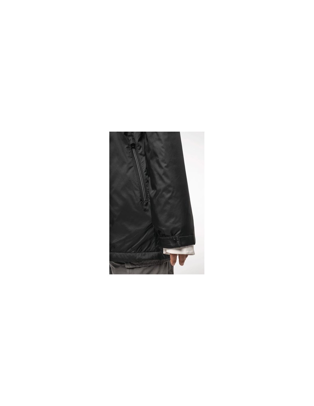 Forro de micropolar: cálido y transpirable. Etiqueta extraíble para facilitar la personalización. 100% poliamida 210T con revestimiento acrílico. Forro 100% poliéster micropolar. Corte recto. Forro micropolar a tono en cuerpo, cuello y capucha. Mangas acolchadas y forradas en poliéster. Cierres con cremallera negra y cadeneta plateada de nylon. 2 bolsillos delanteros con cremallera. 1 bolsillo interior con cierre de velcro. Capucha en 3 paneles, forrada y con cordón de ajuste de color negro. Ajuste en puños con 2 botones a presión. Acabado de media luna en la parte interior-posterior del cuello para facilitar la personalización de marca. Presilla para colgar en la parte interior del cuello. Cremallera invisible de personalización en interior pecho izquierdo y en el bajo de la prenda. Etiqueta de marca extraíble Tear-away.