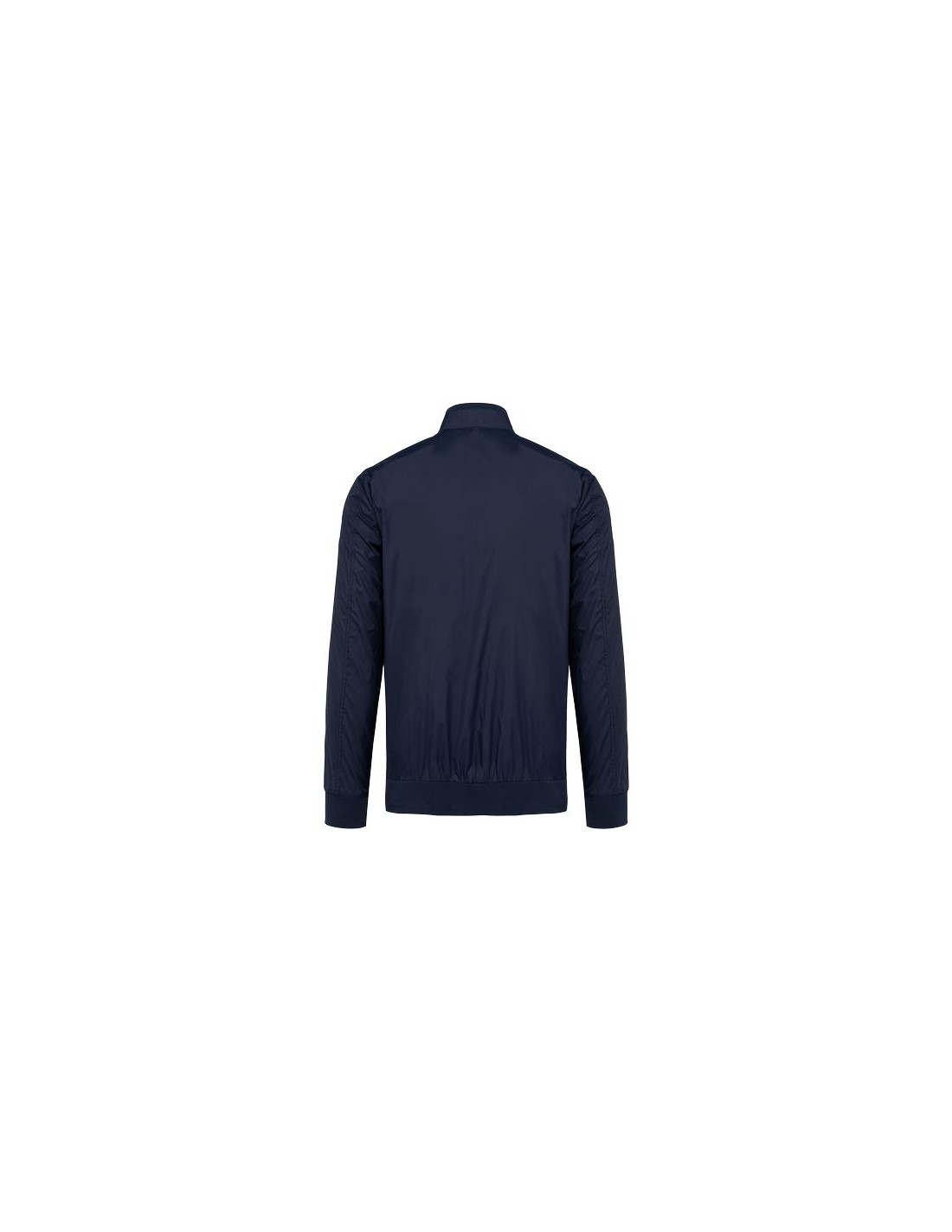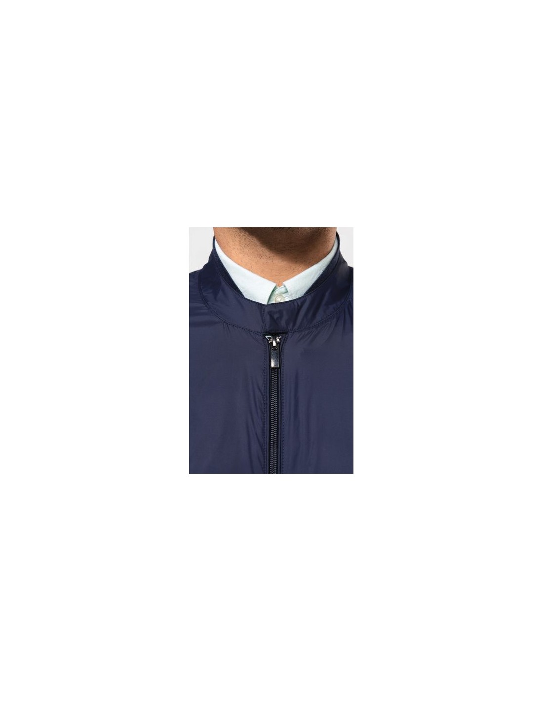 Chaqueta de hombre ligera de estilo urbano e informal. Su doble cuello le aporta estilo y una mayor calidez. 100 % poliamida. Cierre con cremallera metálica y botón a presión en el cuello. Bolsillos laterales con cierre de botón a presión. Cuello forrado con interior acanalado 1x1, bajo de mangas y de la chaqueta ajustados con canalé 1x1 (97 % poliéster/3 % elastano). Trabilla en el interior del cuello para colgar la chaqueta. Las costuras interiores de las mangas y la sisa están ribeteadas para un buen acabado. Forro interior extraíble en la parte superior de la espalda con parche para facilitar la personalización. Cremallera de personalización interior en el pecho. Sin etiqueta de marca, únicamente una etiqueta con la talla para facilitar la personalización.