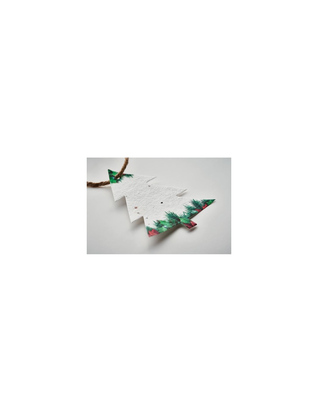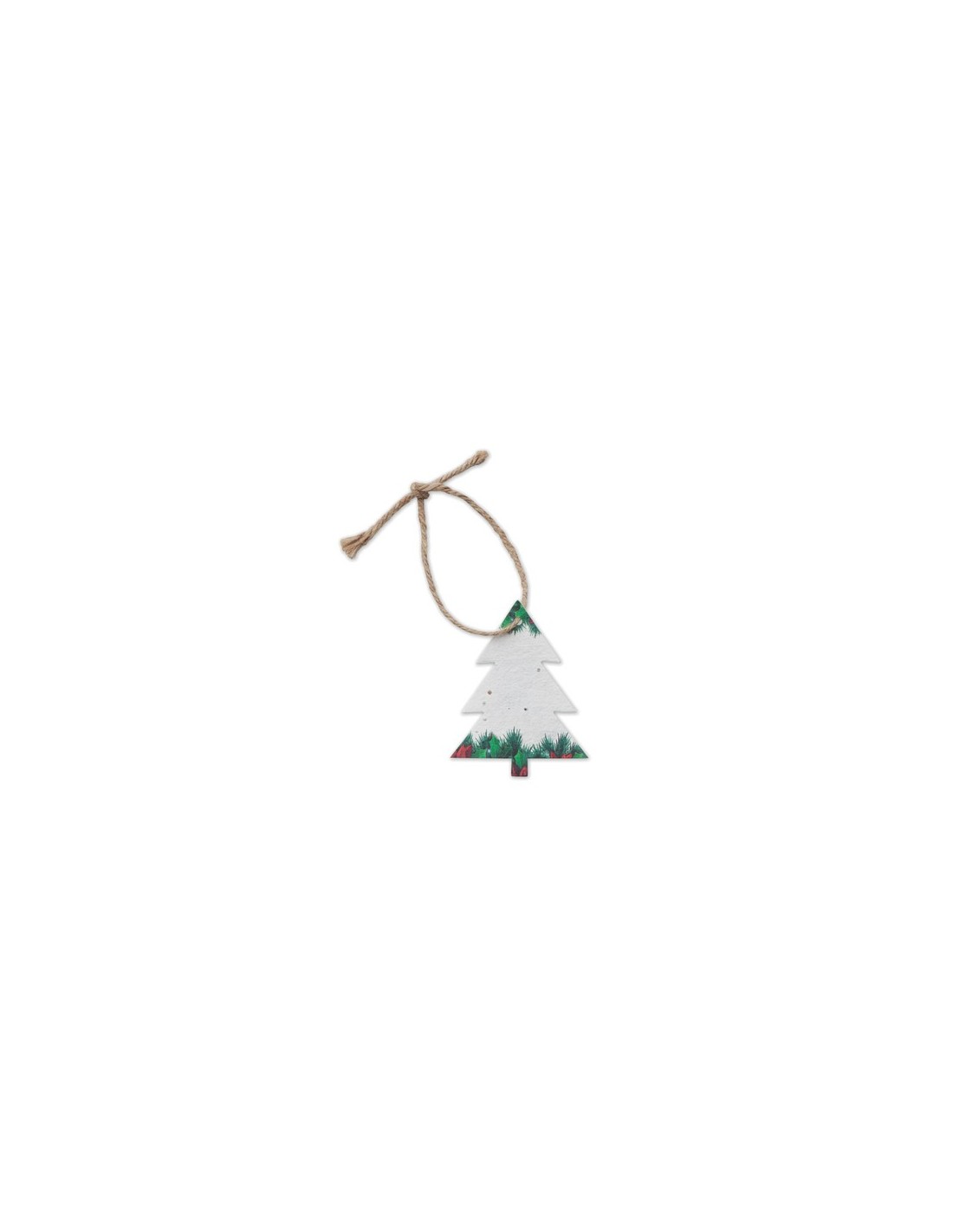 Adorno navideño hecho de papel de semillas en forma de árbol de Navidad de flores silvestres y cuerda de yute. Después de usarlo, planta el adorno y observa cómo crecen en tu jardín. Fabricado en la UE.