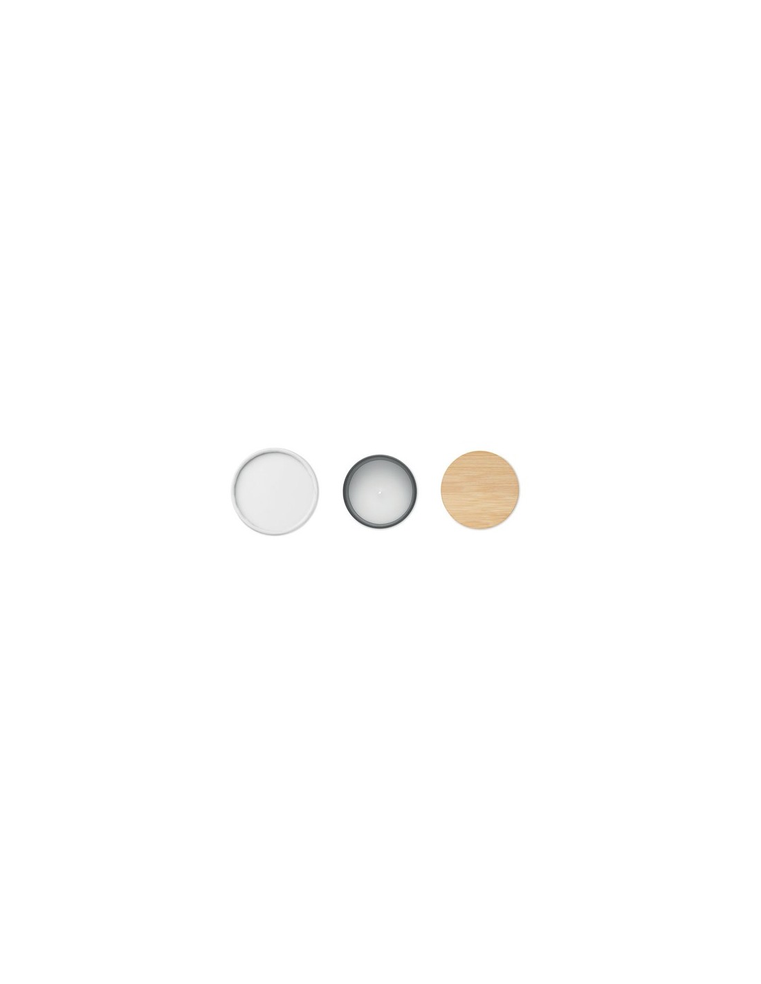 Vela de cera con fragancia de plantas en un tarro de cristal opaco con tapa de bambú. 200 gr. Tiempo de combustión: 33 horas. Presentada en una caja de papel tubular de regalo. El bambú es material natural, el color del articulo puede variar.