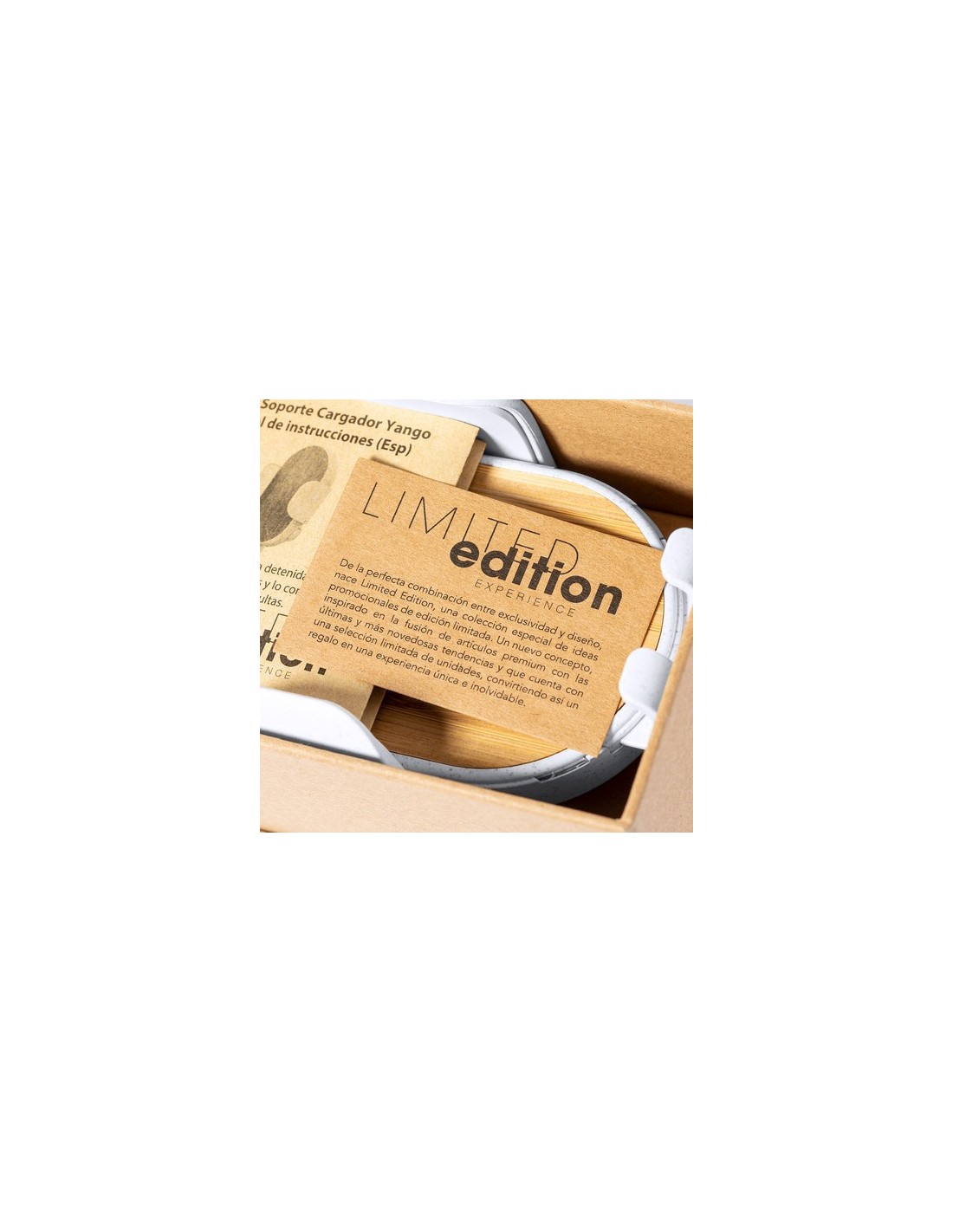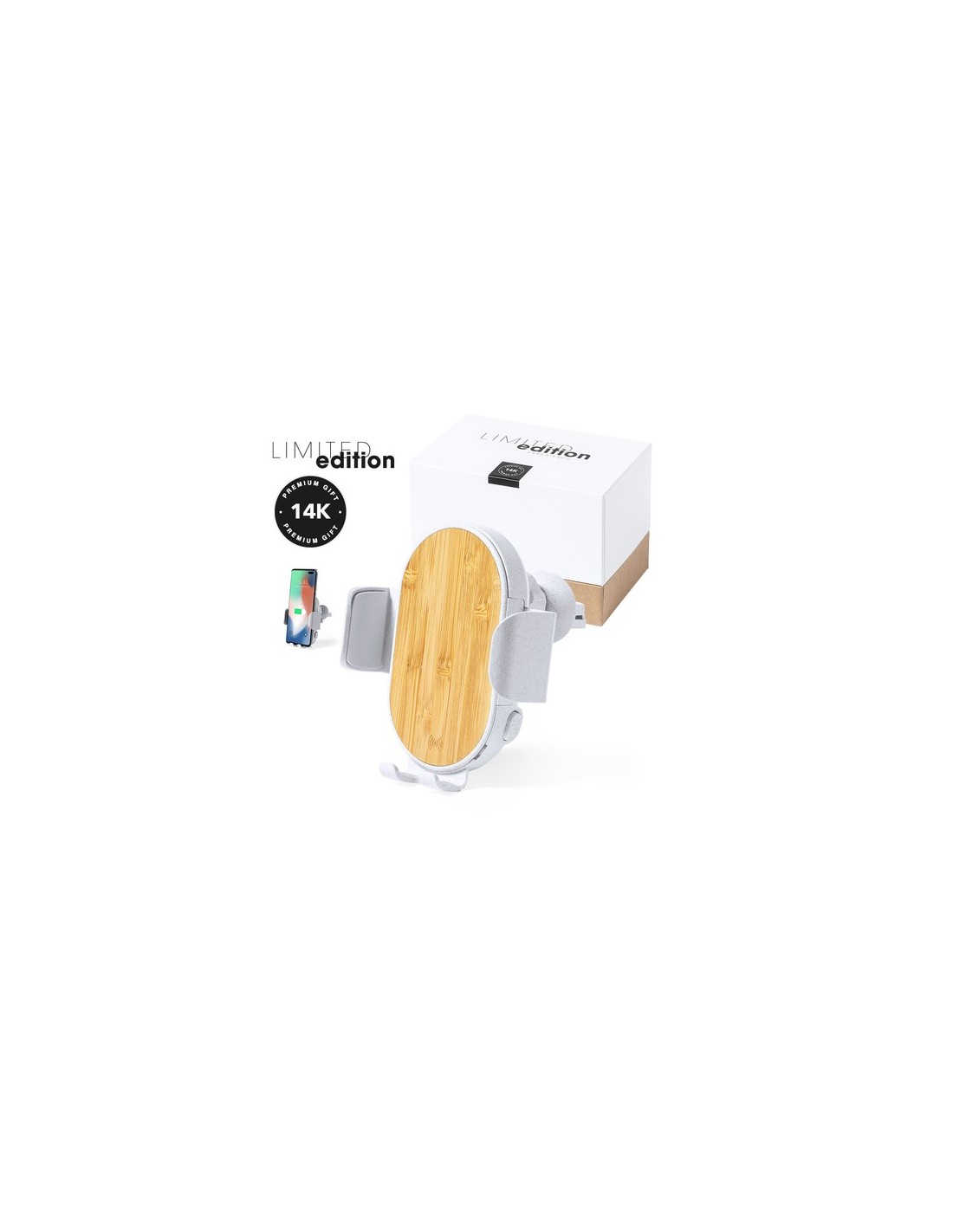 Soporte Cargador Inalámbrico de Coche Limited Edition. Un estilo innovador, donde sostenibilidad, diseño y última tecnología se combinan en una calidad premium. Fabricado en bambú y carcasa en resistente ABS y caña de trigo, para así fomentar la utilización de materias primas naturales y reducir las emisiones contaminantes. Con cargador inalámbrico de 15W. Compatible con dispositivos móviles de carga inalámbrica, con cable cargador USB C de 100 cm y manual de instrucciones en Español e Inglés incluidos. De la perfecta combinación entre exclusividad y diseño, nace Limited Edition, una colección especial de ideas promocionales de edidición limitada. Un nuevo concepto, inspirado en la fusión de artículos premium con las últimas y más novedosas tendencias y que cuenta con una seleción limitada de unidades, convirtiendo así un regalo en una experiencia única e inolvidable. Exclusivo estuche de presentación Limited Edition, con diseño protegido por derechos de propiedad industrial. Incluida tarjeta con descripción de Limited Edition en cartón reciclado. Inalámbrico 15W. Ajustable Composition : Caña de Trigo/ ABS/ Bambú.