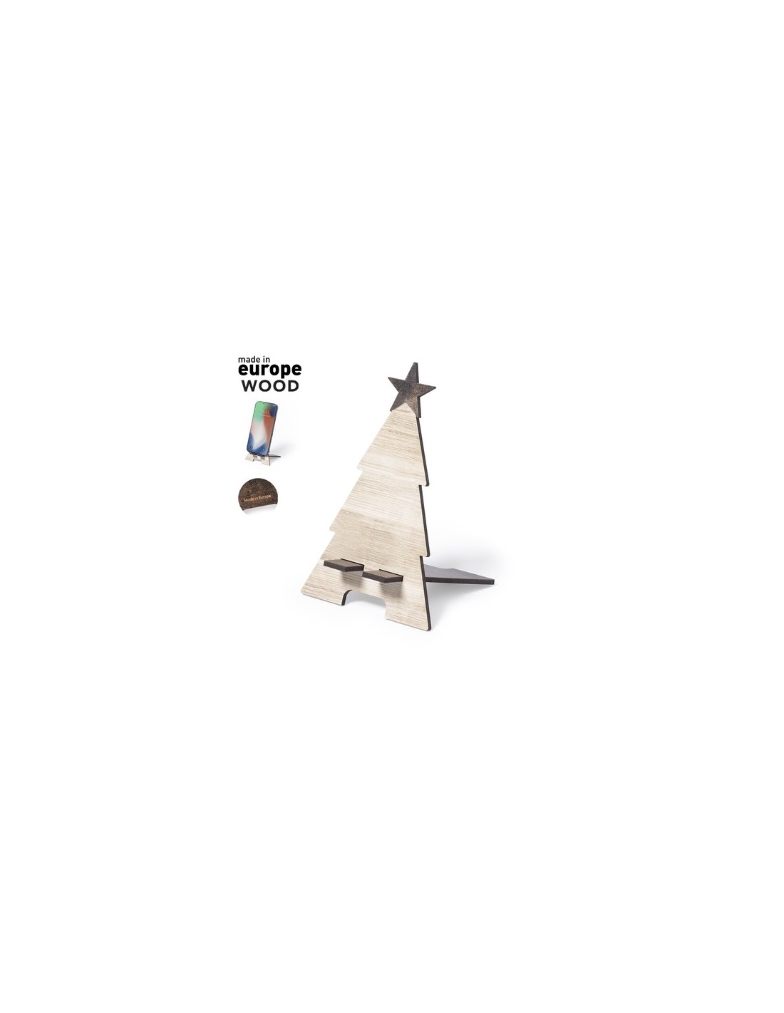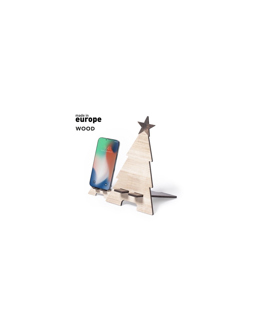 Soporte para smartphone con diseño árbol de navidad, fabricado en madera natural y de original acabado bicolor. De fácil montaje y con distintivo Made In Europe. Composition : Madera.