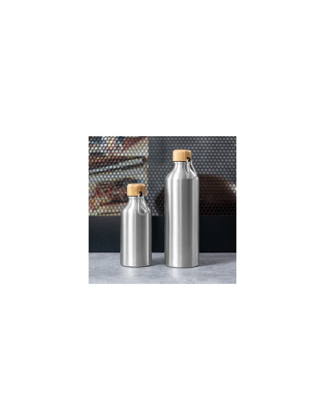 Bidón de línea nature y 400 ml de capacidad. Cuerpo en aluminio de acabado mate y tapón de bambú con mosquetón a juego para fácil transporte. Libre de BPA y presentado en atractiva caja de diseño eco. 400 ml Composition : Aluminio/ Bambú.
