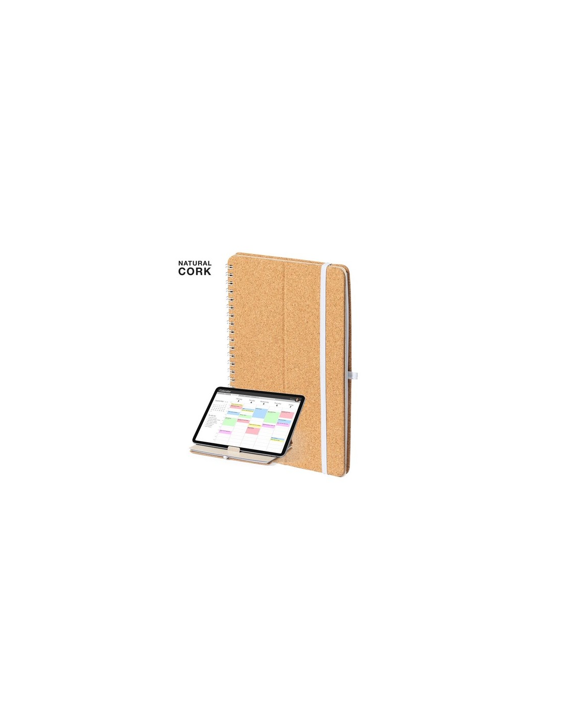 Libreta soporte de anillas de línea nature. Tapas rígidas fabricadas en corcho natural, con original soporte en caña de trigo para smartphone y tablet. Incluye elástico de cierre y soporte para bolígrafo en color blanco. 70 hojas interiores con disposición a una raya. Presentada en bolsa individual de diseño. Portada Rígida. 70 Hojas Composition : Corcho/ Caña de Trigo/ PP.