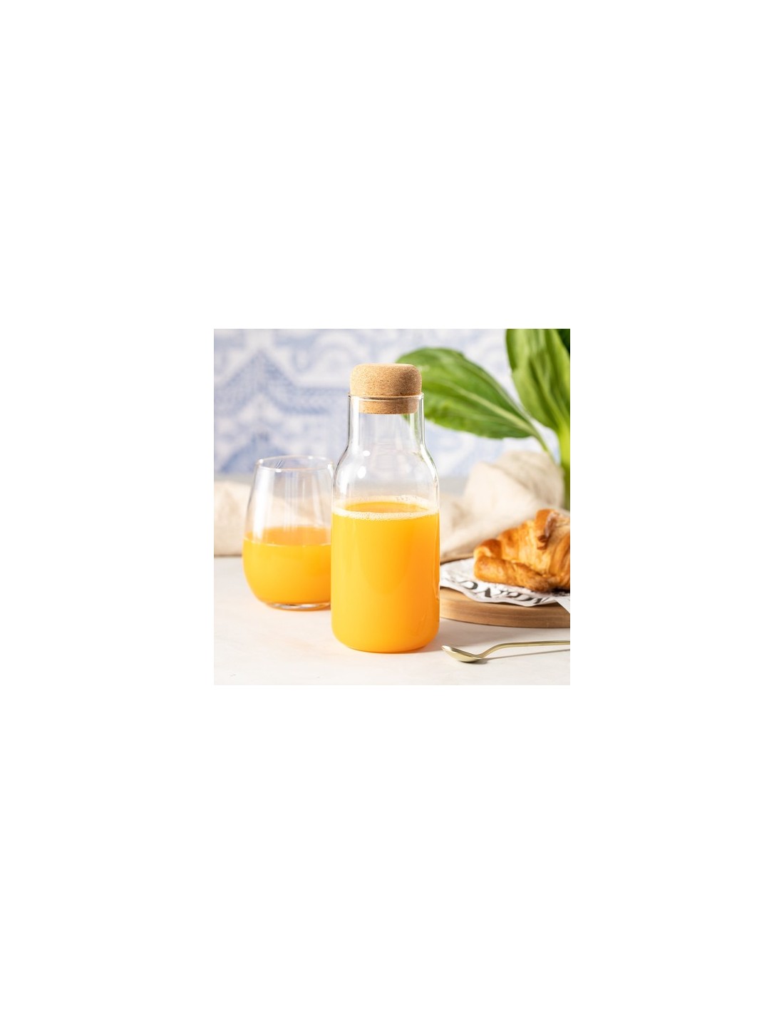 Botella de 800 ml de capacidad y diseño innovador que permite presentar tus bebidas preferidas y mantener ordenados diferentes ingredientes en tu cocina de manera elegante y distinguida. Fabricado en cristal de borosilicato, con tapón de corcho natural. El cristal de borosilicato ofrece una resistencia, estética y durabilidad excepcionales, convirtiéndolo en una idea de regalo perfecta para la conservación y presentación de bebidas, o bien como objeto de decoración. Presentado en caja individual de diseño eco en cartón kraft. 800 ml Composition : Cristal Borosilicato/ Corcho.