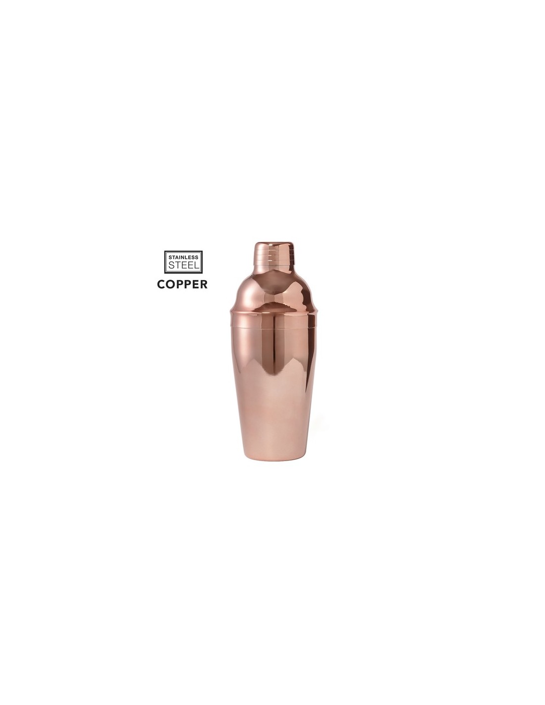 Cocktelera de 550 ml de capacidad en acero inox y recubrimiento exterior de cobre galvanizado. Con cierre de seguridad y tapón dosificador en parte superior. Presentada en atractiva caja individual de diseño. 550 ml Composition : Acero Inox.