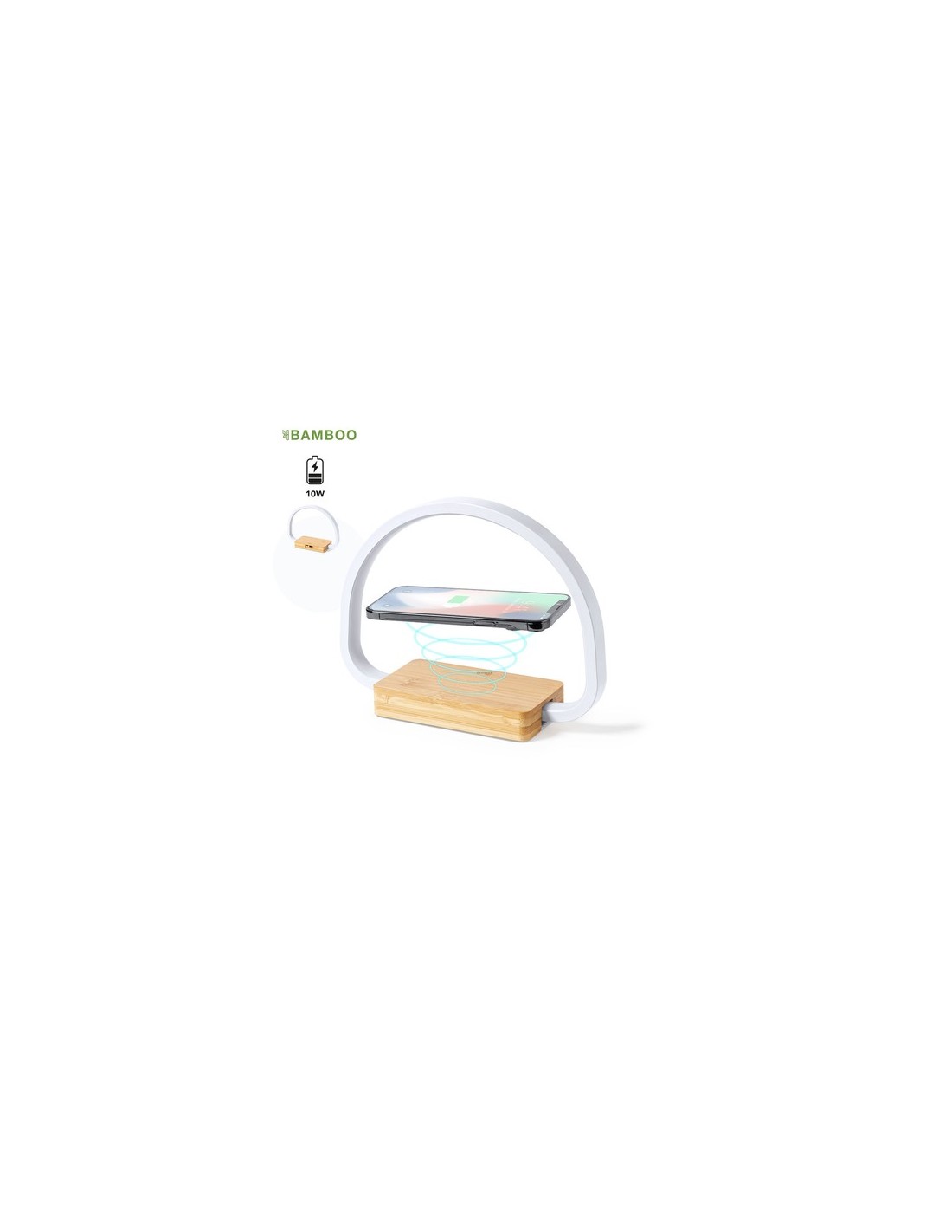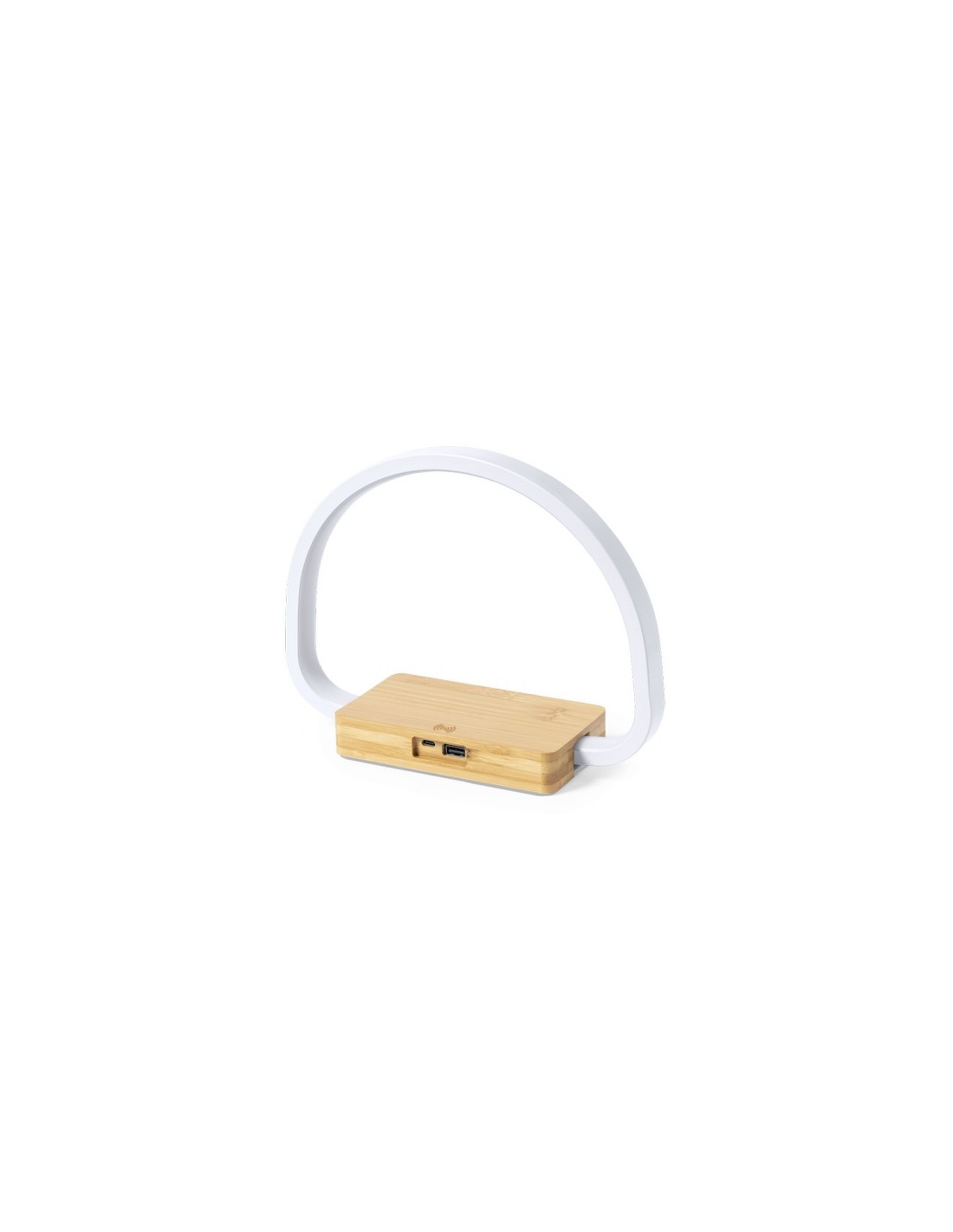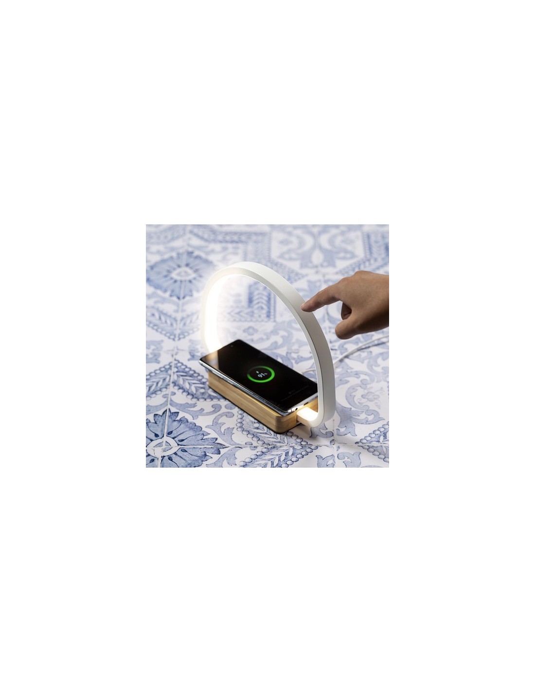 Lámpara cargador de diseño eco. Fabricada en bambú procedente de cortes naturales y con base antideslizante. Cargador inalámbrico 10W integrado. Incluye 52 LEDs y 3 posiciones de iluminación (cálida, fría y media), con intensidad de luz regulable. Compatible con dispositivos móviles de carga inalámbrica y conexión USB. Incluye cable cargador Tipo C y viene presentada en una atractiva caja de diseño eco. Disponible manual de instrucciones en español e inglés. 52 Ledes. 3 Posiciones de Luz. Intensidad de Luz Regulable. Conexión USB. Inalámbrico 10W. Salida USB Composition : Bambú/ Aluminio.