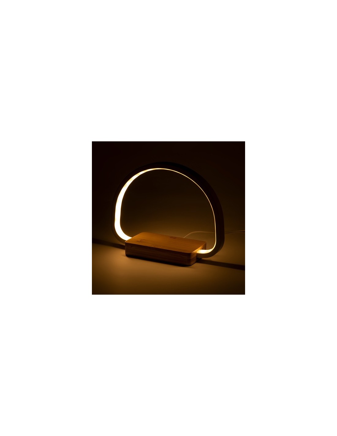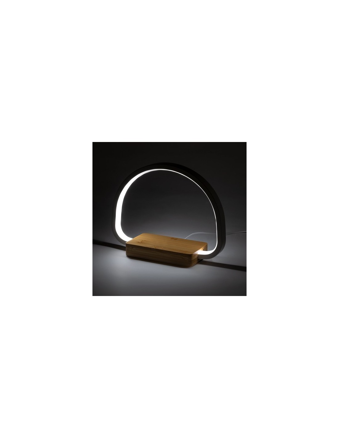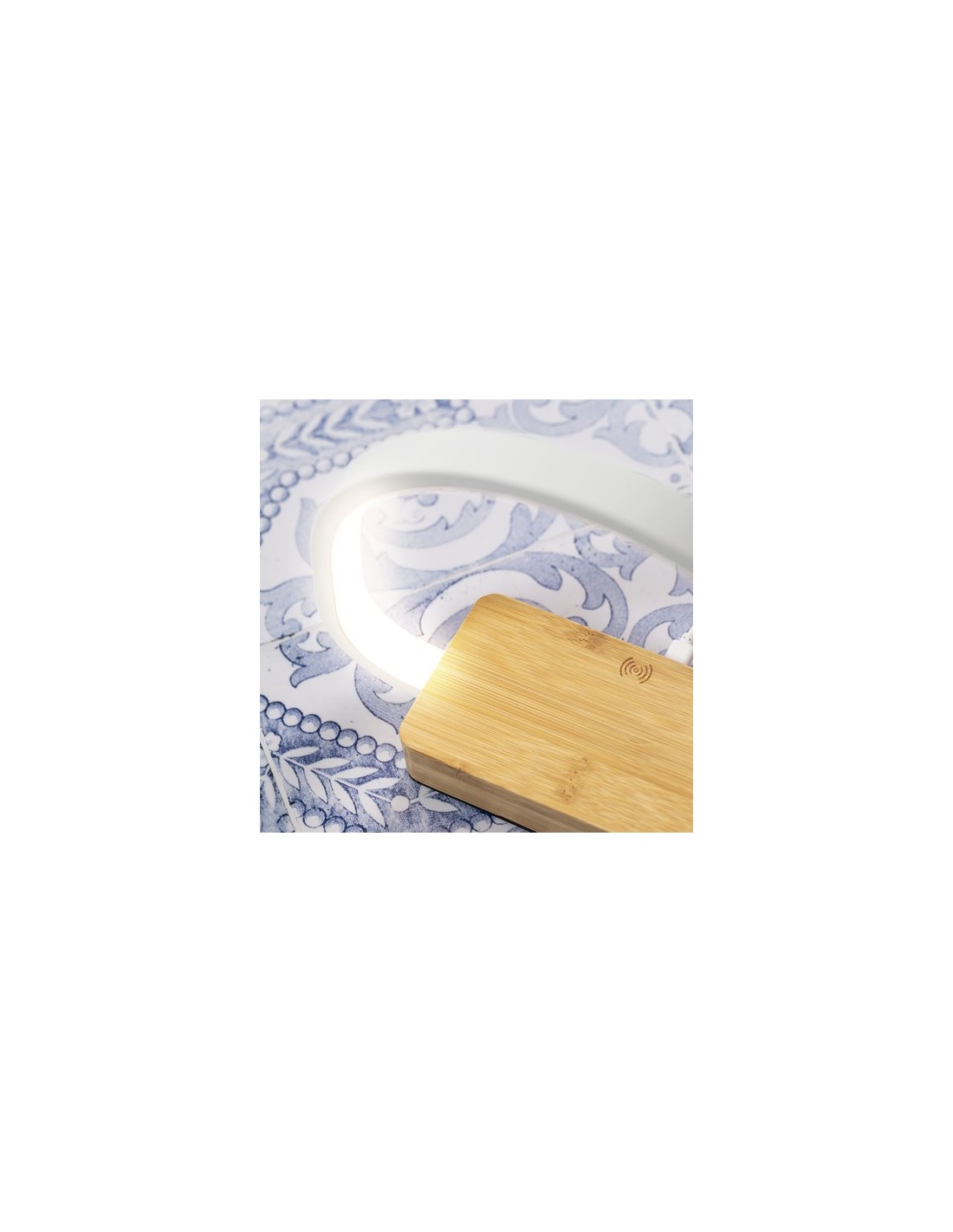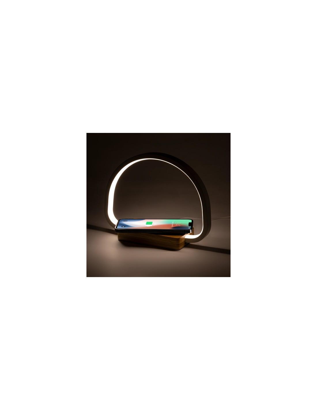 Lámpara cargador de diseño eco. Fabricada en bambú procedente de cortes naturales y con base antideslizante. Cargador inalámbrico 10W integrado. Incluye 52 LEDs y 3 posiciones de iluminación (cálida, fría y media), con intensidad de luz regulable. Compatible con dispositivos móviles de carga inalámbrica y conexión USB. Incluye cable cargador Tipo C y viene presentada en una atractiva caja de diseño eco. Disponible manual de instrucciones en español e inglés. 52 Ledes. 3 Posiciones de Luz. Intensidad de Luz Regulable. Conexión USB. Inalámbrico 10W. Salida USB Composition : Bambú/ Aluminio.