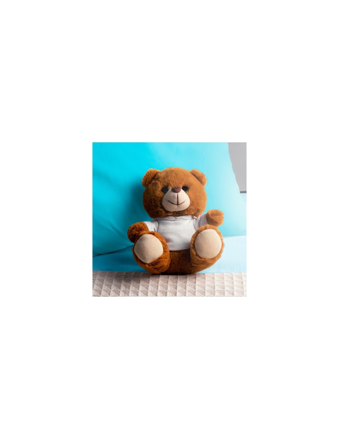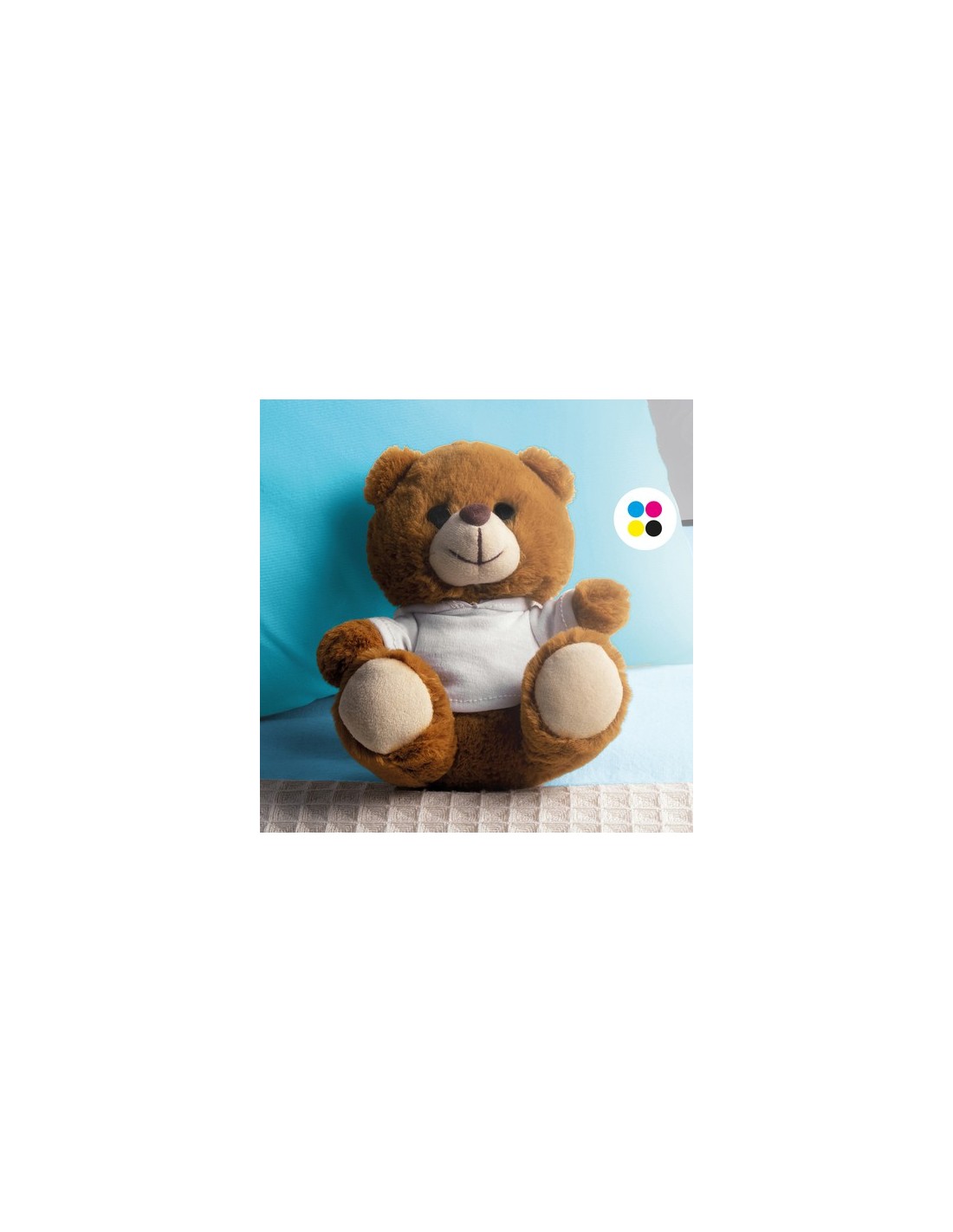 Osito de peluche con camiseta y capucha para personalización. Material : Poliéster Tecnica De Marcaje : SUPLEMENTO EMBOLSADO INDIVIDUAL, CODIGO J SERIGRAFIA PRODUCTO 1 COLOR, SUBLIMACION CAMISETA OSO GEORGE 1 CARA