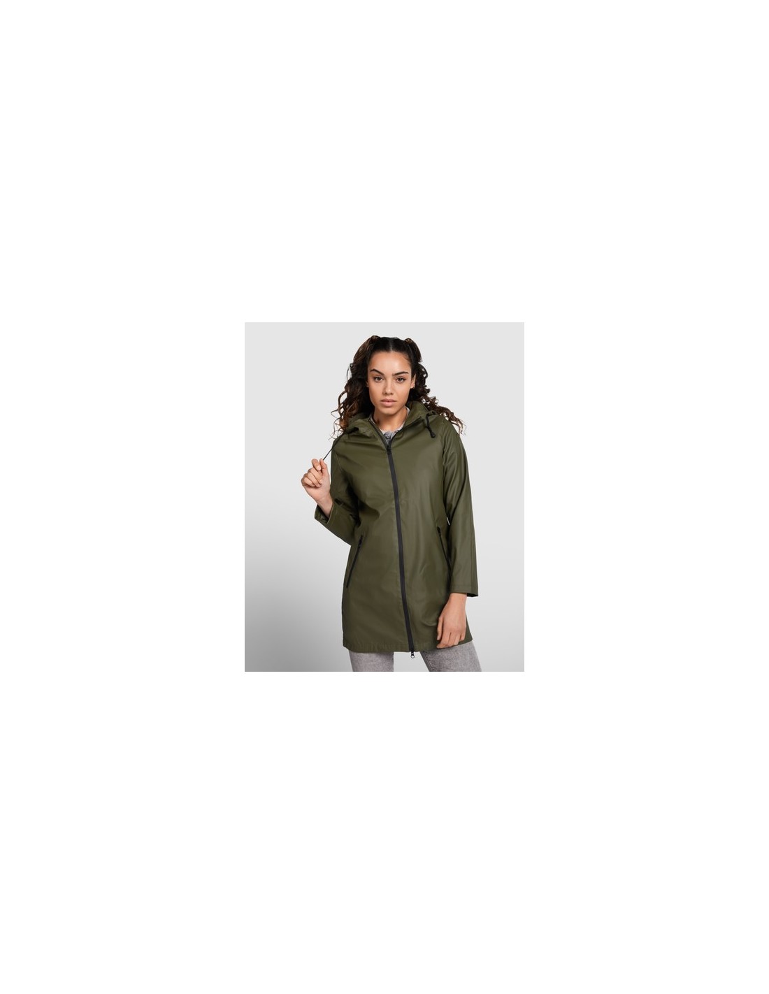 Chubasquero impermeable entallado para mujer.· Capucha fija con visera.· Cremalleras y costuras termoselladas.· Detalles a contraste en color negro.· Dos bolsillos laterales con cremallera.· Bajo posterior con abertura. * Etiqueta removible.* Modelo impermeable.* Dúo concept. Composition : 100% poliéster, PU, 210 g/m².