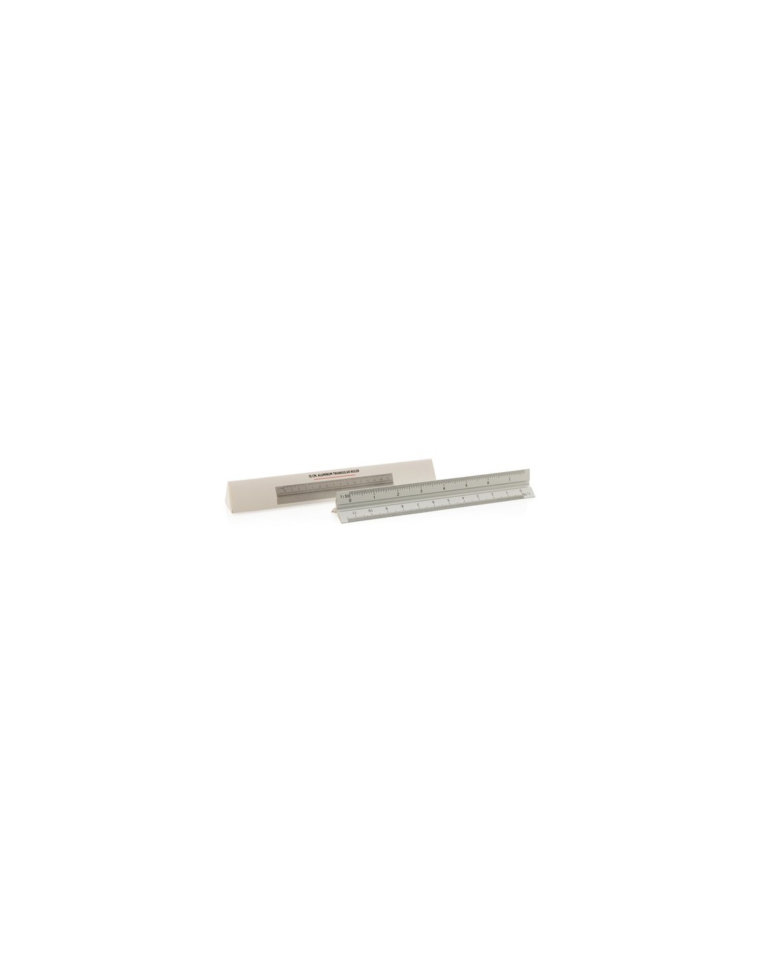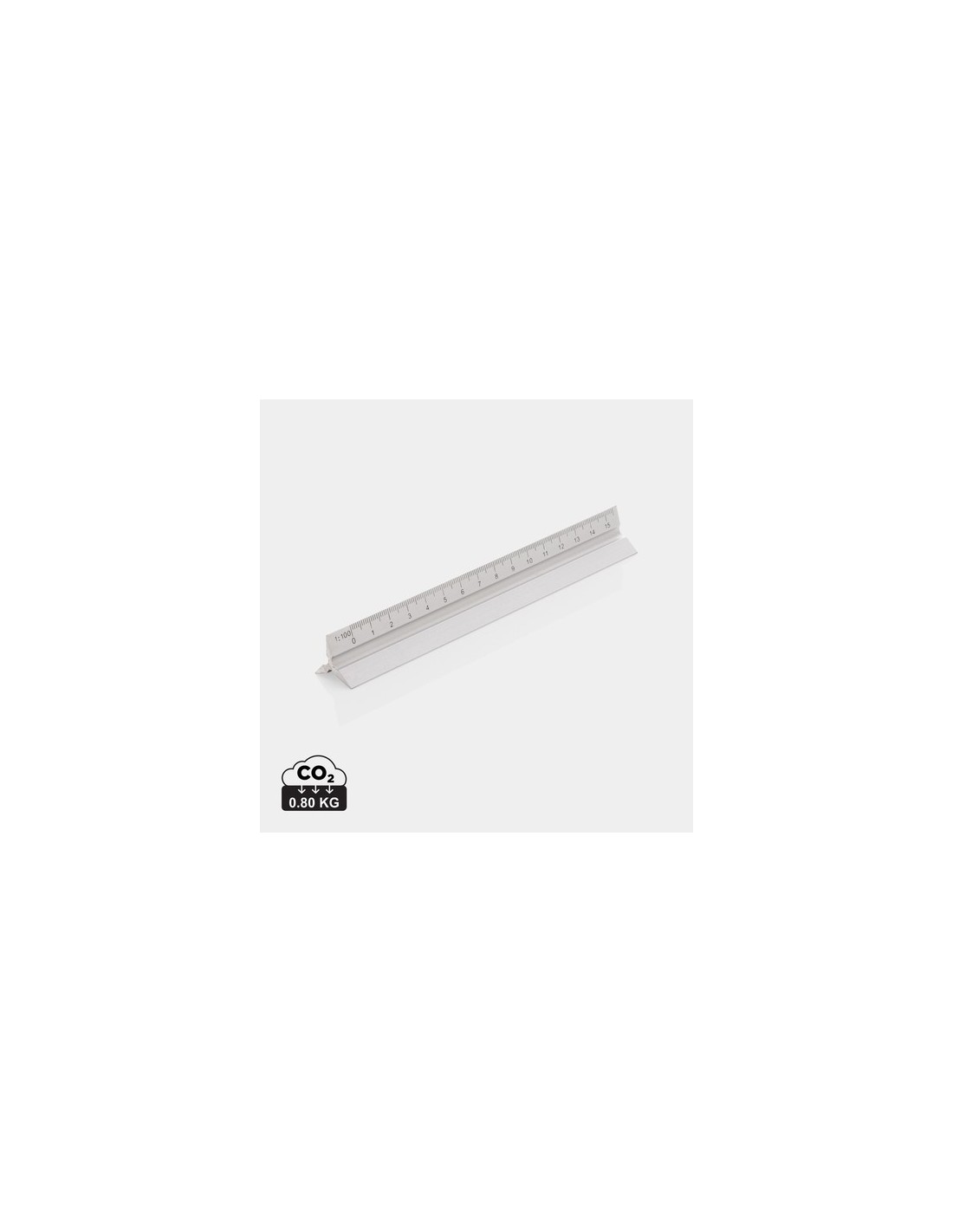 Regla de aluminio con 5 escalas diferentes (1:20;1:25;1:50;1:75;1:100) 15 cm. Perfecto para llevar en el bolsillo. Material : Aluminio Recycled Content Percent : 0 Conforme directiva Cadmio 91/338/EC, Conforme contenido de plomo U.S, Conforme PAHS content in Reach & ZEK 01-4-08, Libre de parafinas cloradas de cadena corta y media. Packaging : Polybag y a granel All print codes : Pad Print,Laser Engraving 2 - Print code default : Tampografía - artículo - 80 x 6 mm - max color : 5 Social Audits : BSCI Total CO2 emissions : 0,8.