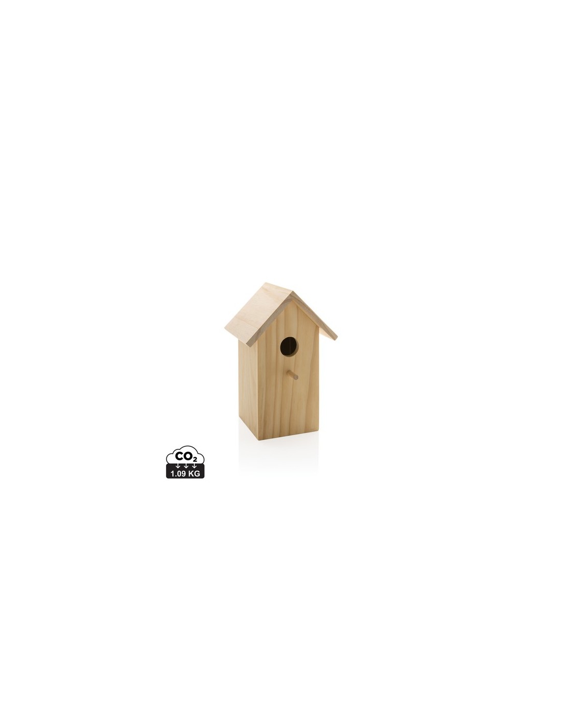 Ayuda a los pájaros a encontrar un nido y un escondite adecuados colgando una caja nido. Con una abertura de entrada de 33 mm, este nido es ideal para gorriones domésticos. Pero especies variadas también pueden instalarse en esta casa para pájaros. El nido está hecho de madera de pino certificado FSC®. En el lateral hay una abertura a través de la cual se puede limpiar fácilmente. En la parte posterior hay un orificio pretaladrado para que puedas colgar fácilmente el nido. Viene en caja de regalo kraft. Material : FSC® Madera Recycled Content Percent : 0 Conforme directiva Formaldahyde EN 14184-1, Conforme directiva PCP content 1999/51/EC, La certificación de gestión forestal del FSC confirma que el bosque se gestiona de forma que se preserva la diversidad biológica y se beneficia la vida de la población y los trabajadores locales, al tiempo que se garantiza la viabilidad económica, Reglamento (UE) 2023/1115 Reglamento de la UE contra la deforestación Packaging : Polybag y a granel All print codes : CO2 Engraving 2,Pad Print - Print code default : Grabado CO2 - parte frontal y baja del artículo - 90 x 80 mm - max color : 1 Social Audits : BSCI Total CO2 emissions : 1,09.