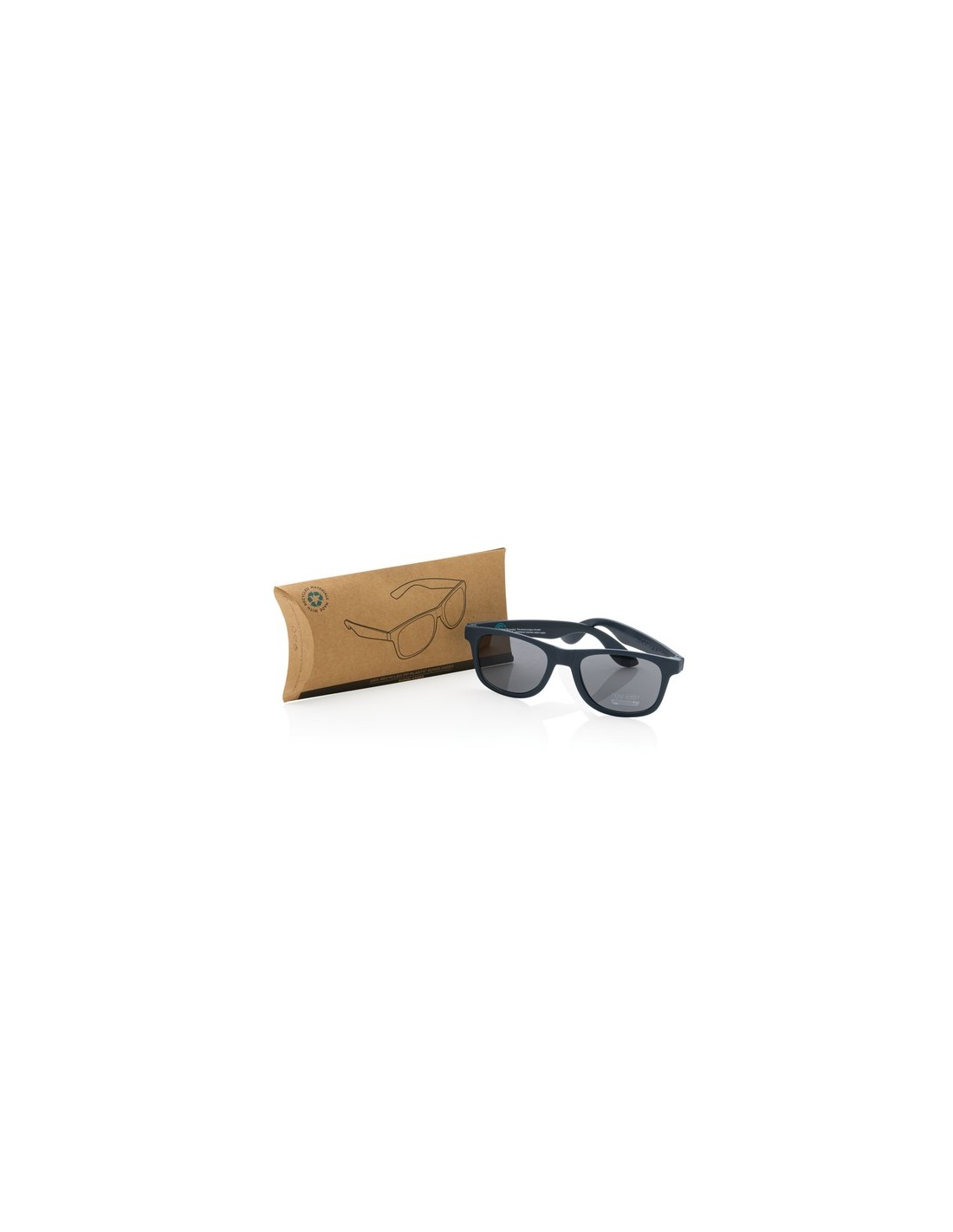 Gafas de sol fabricadas con montura de PP reciclado certificado RCS. El contenido del marco es 100% reciclado. Contenido reciclado total: 66% basado en el peso total del artículo. La certificación RCS garantiza una cadena de suministro completamente certificada de los materiales reciclados. Los lentes son de acrílico ahumado y cumplen con EN ISO 12312-1, UV 400 y CAT 3. Presentados en una funda de papel kraft FSC®. Material : Polipropileno reciclado Recycled Content Percent : 67 Conforme directiva Cadmio 91/338/EC, Conforme directiva protección ojos y cara EN ISO 12312-1, Conforme contenido de plomo U.S, Conforme PAHS content in Reach & ZEK 01-4-08, Conforme directiva Phtalate content, Libre de parafinas cloradas de cadena corta y media. Packaging : Polybag y a granel All print codes : Pad Print - Print code default : Tampografía - lado izquierdo del artículo - 50 x 7 mm - max color : 5 Total CO2 emissions : 0,24.