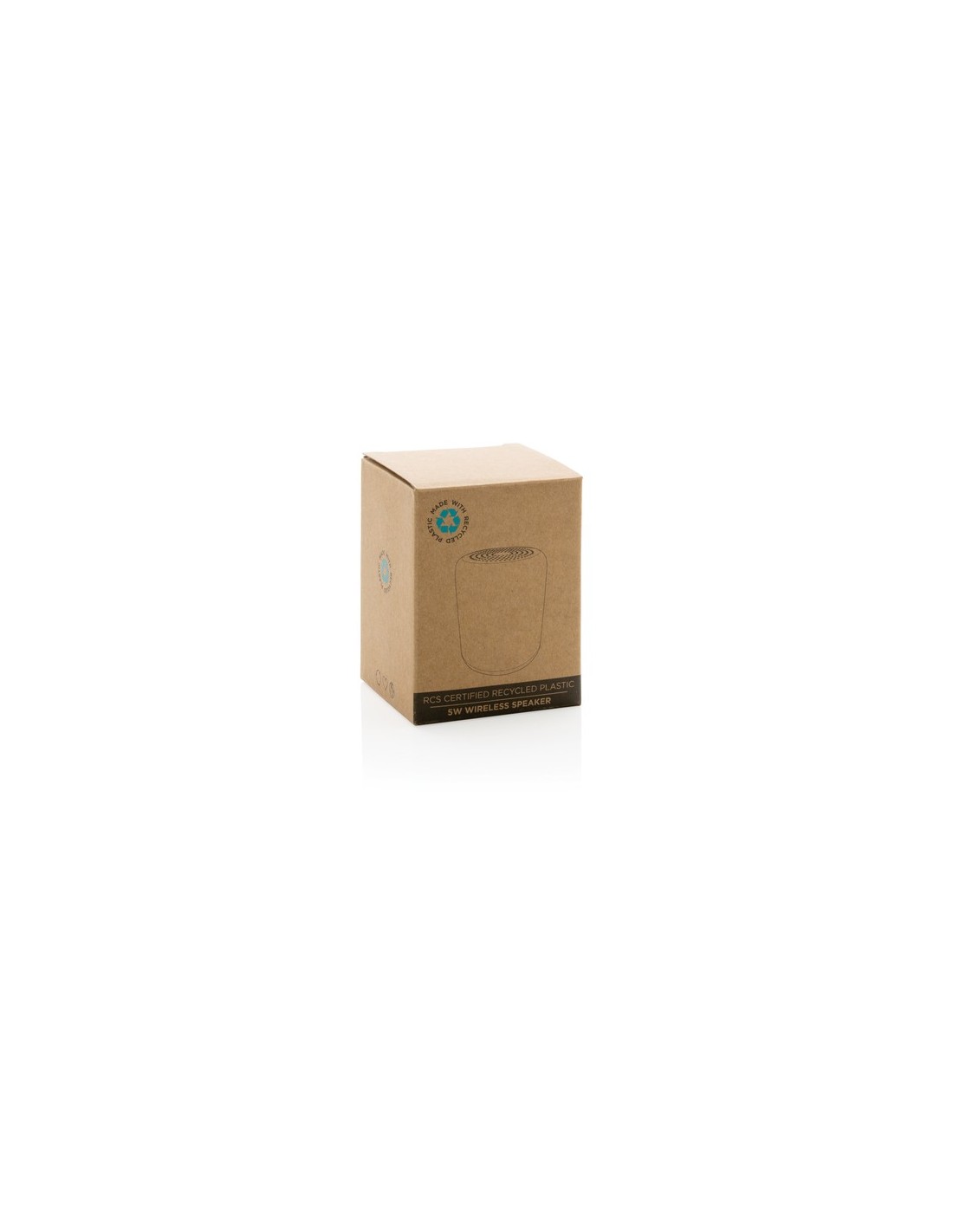 Altavoz inalámbrico de 5W fabricado con ABS y TPE reciclados con certificación RCS (Recycled Claim Standard). Contenido reciclado total: 38% basado en el peso total del artículo. La certificación RCS garantiza una cadena de suministro completamente certificada de los materiales reciclados. El altavoz tiene una luz integrada en la parte inferior. El altavoz está equipado con una batería de 1200 mAh para garantizar hasta 5 horas de tiempo de reproducción y BT5.0 para una conexión fluida y un sonido claro. Rango de conexión de hasta 10 metros. Presentado en caja de mezcla FSC®. Incluye cable de carga de TPE reciclado certificado por RCS. Artículo y accesorios 100% libres de PVC. Material : ABS reciclado, TPU reciclado Recycled Content Percent : 38 Conforme directiva equipamientos Radio y Telecomunicaciones 2014/53/EU, Conforme directiva de sustancias peligrosas 2011/65/EC & 2015/863, Hoja de datos de seguridad del material disponible, Conforme PAHS content in Reach & ZEK 01-4-08, Conforme directiva Phtalate content, Conforme directiva Battery transportation safety UN38.3, Certificado para transporte aéreo, Libre de parafinas cloradas de cadena corta y media., certificado de Recycled Claim Standard WEEE Battery : 1 Li-ion - 18650 - 36,2 g. Packaging : Caja de regalo All print codes : Pad Print - Print code default : Tampografía - parte frontal del artículo - 20 x 50 mm - max color : 5 Social Audits : BSCI Total CO2 emissions : 3,75.