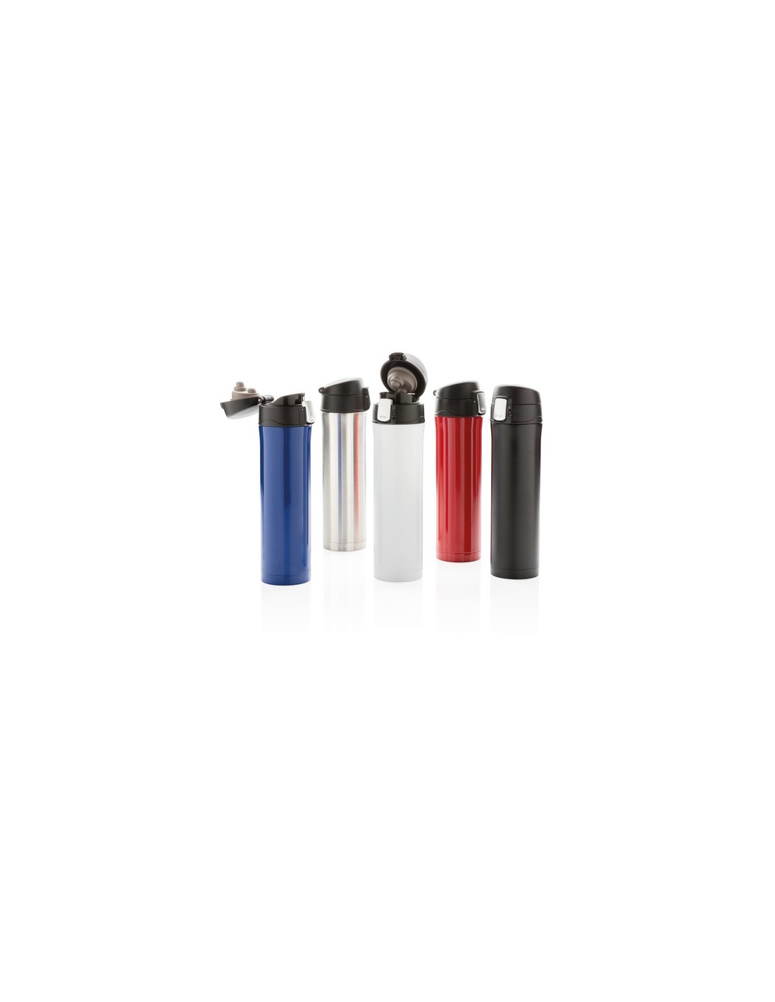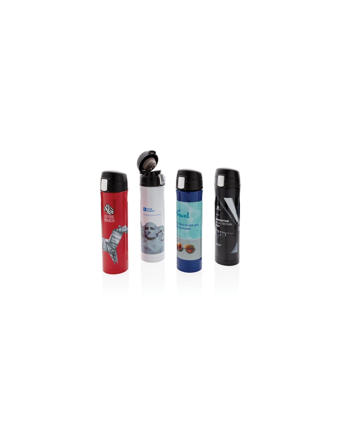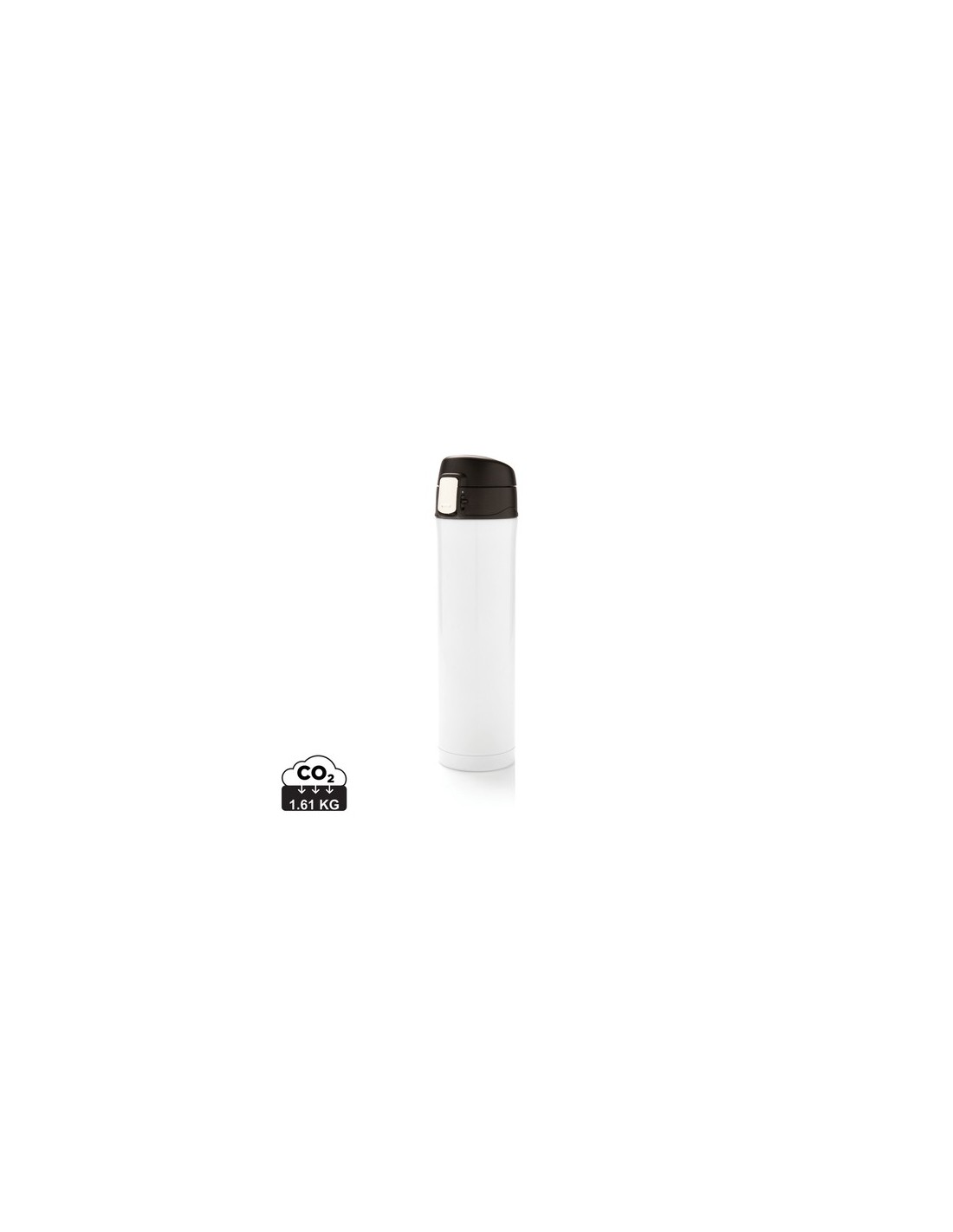 Este fantástico termo de acero inoxidable de doble pared mantiene tu bebida caliente hasta 5 horas o fría hasta 15 horas. La tapa se puede cerrar con llave y por lo tanto evita cualquier riesgo de fuga o derrame. La tapa es fácil de mantener limpia para una higiene óptima y es apta para lavavajillas. El diseño único te permite beber de forma cómoda y segura con una mano directamente. El tamaño es apto para colocar en cualquier portabebidas de coche. Fabricado con materiales reciclados certificados RCS (Recycled Claim Standard). La certificación RCS garantiza una cadena de suministro completamente certificada de los materiales reciclados. Contenido reciclado total: 76% basado en el peso total del artículo. Sin BPA. Capacidad 450ml. Incluye embalaje kraft certificado FSC®. Material : Acero inoxidable reciclado Recycled Content Percent : 76 Sin materiales Bisphenol A, Conforme directiva seguridad Alimentos 1935/2004/EC & 2020/1245, certificado de Recycled Claim Standard Packaging : Bolsa de plástico y caja individual All print codes : Digital round 360-2,SilkScreen Round,Laser Engraving 3,Pad Print Drinkware - Print code default : Stampa digital 360° - artículo - 205 x 192 mm - max color : 4 Social Audits : SMETA Total CO2 emissions : 1,61.