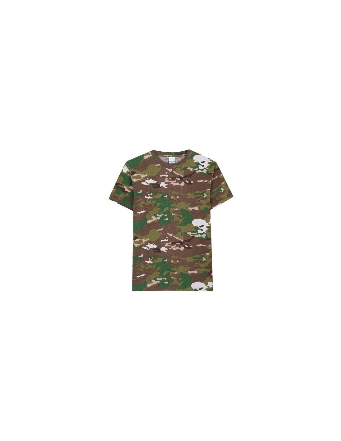 Camiseta unisex con estampado camuflaje. Confeccionada en 100% algodón peinado Ring Spun de 150g/m2. Tacto suave y corte moderno. Cuello redondo estrecho en canalé 2x2. Dobles costura en dobladillo y mangas para una mayor durabilidad y resistencia al uso intensivo. Etiqueta fácilmente removible. Disponible en tallas XS, S, M, L, XL y XXL. Composition : 100% Algodón Ring Spun, Single Jersey 150 g/ m2.