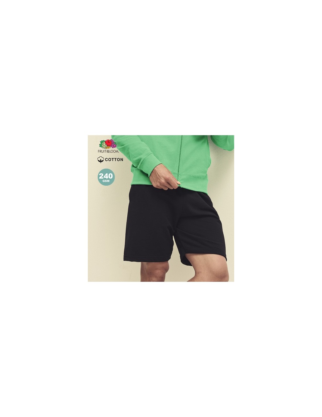 Pantalón corto Lightweight Shorts de Fruit Of The Loom. Fabricado en felpa ligera sin cepillar, en combinación de materiales 80% algodón + 20% poliéster de 240g/m2. Cintura elástica con cordón de ajuste a juego y bolsillos laterales. Disponibles en varios colores y en tallas S, M, L, XL, XXL. Composition : 80% Algodón/ 20% Poliéster 240 g/ m2.