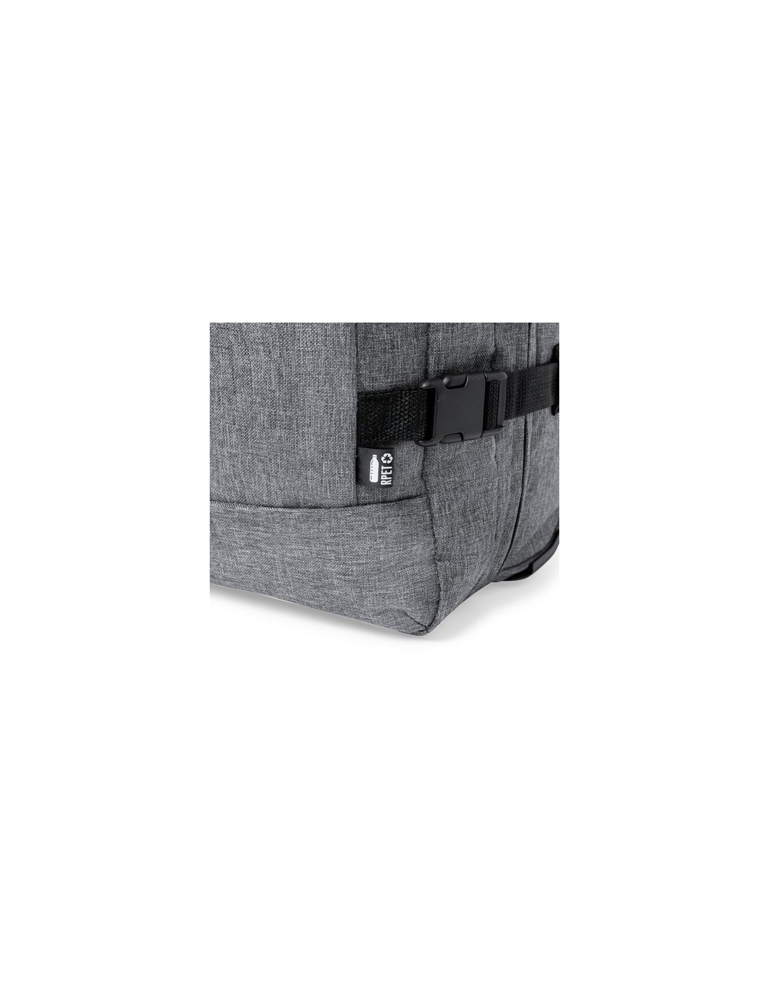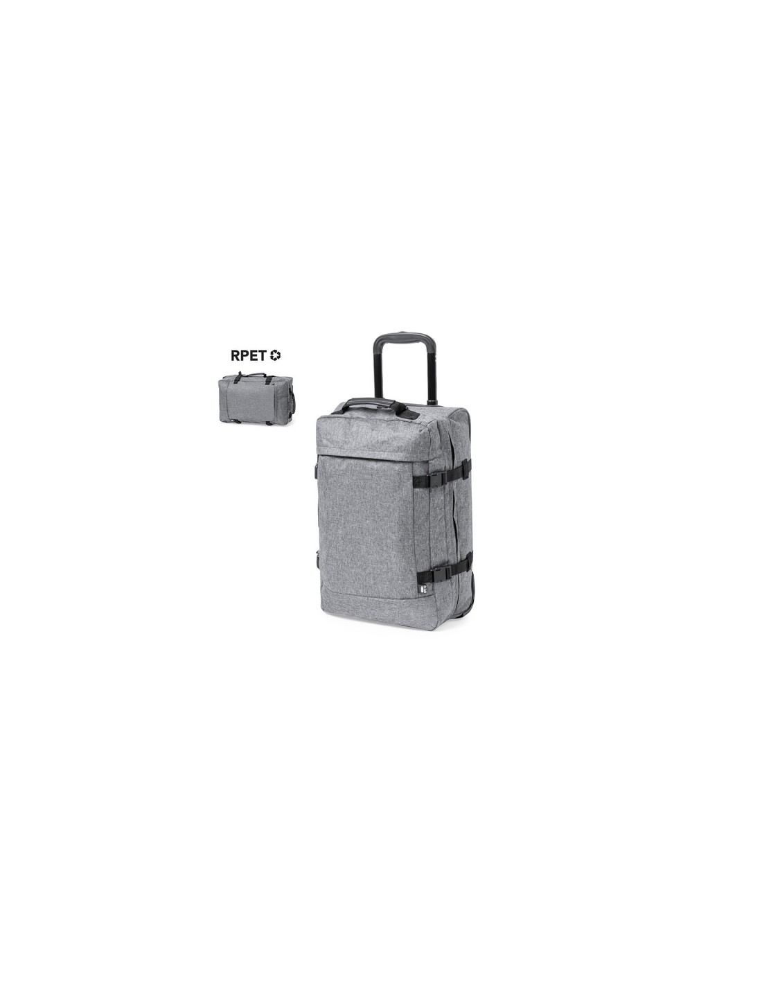 Trolley de línea nature fabricado en resistente 300D RPET. Compartimento principal con cierre de cremallera de doble tirador conforme a los estándares TSA -Administración de la Seguridad en el Transporte-, que permite a las autoridades de aduanas inspeccionar el contenido del equipaje sin tener que forzar o romper el cierre, usando una llave especial a disposición de la autoridad. Interior forrado y con cintas elásticas de sujeción. Exterior con 2 cintas ajustables, cierres de hebilla, bolsillo frontal con cierre de cremallera invisible y 2 asas acolchadas de transporte. Mecanismo extensible metálico en negro, con cómoda asa de transporte y 2 ruedas. Distintivo RPET en etiqueta exterior. Cierre Seguridad TSA Composition : Poliéster 300D RPET.