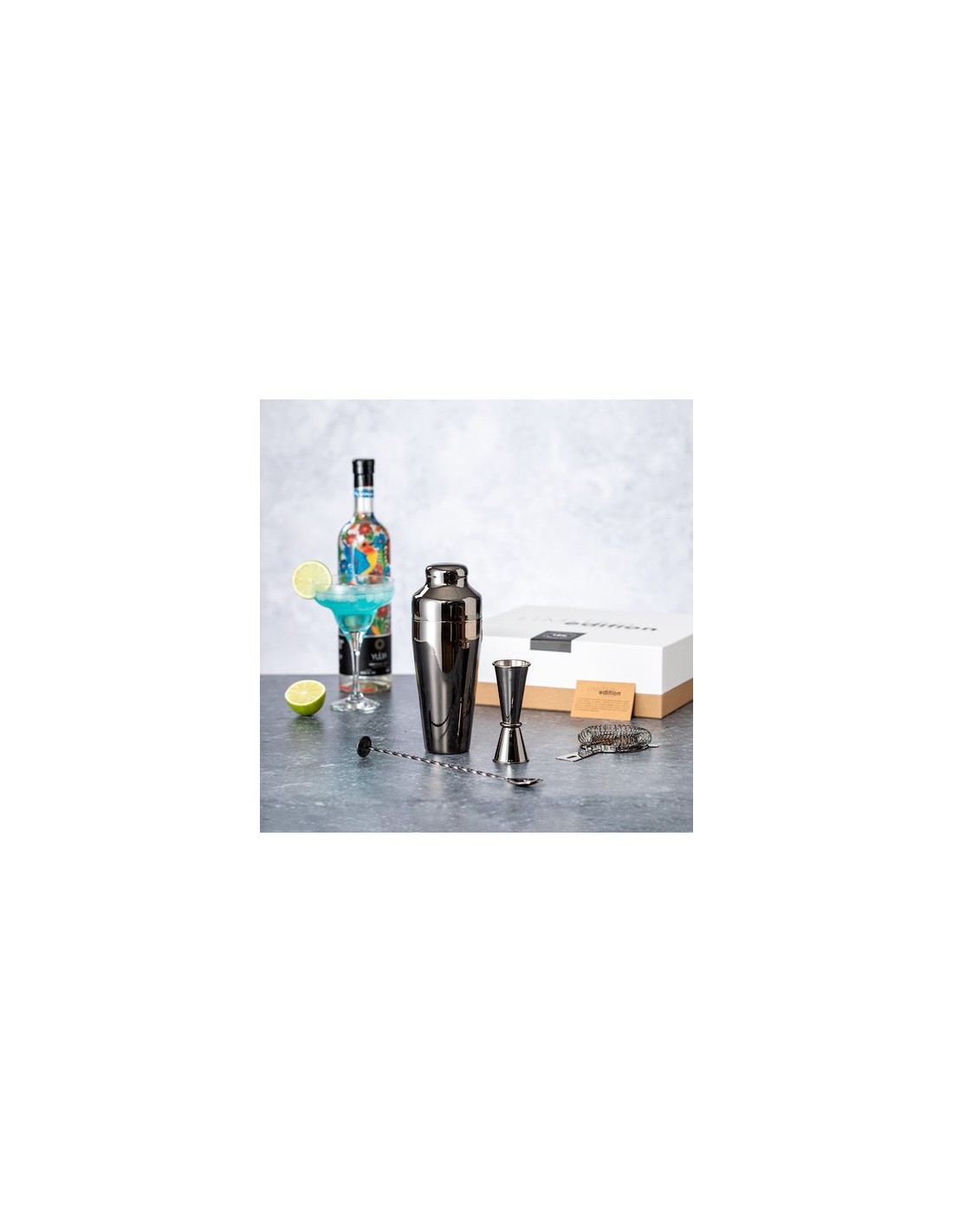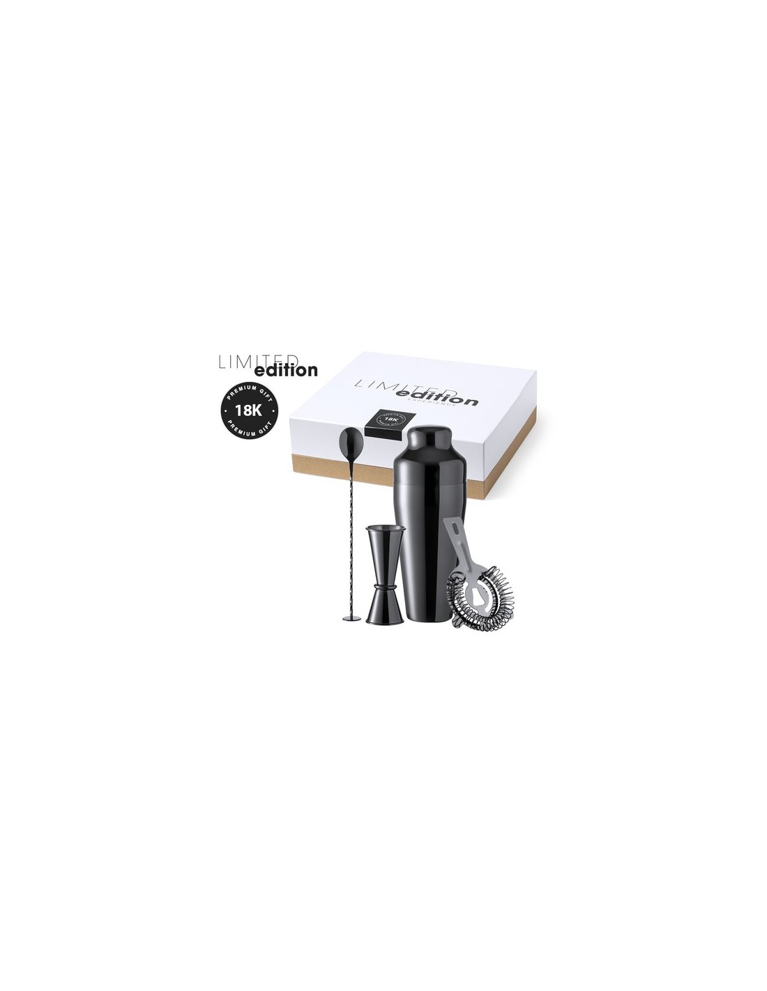 Completo set de cóctel, de diseño exclusivo Limited Edition, fabricado en acero inox de elegante acabado negro brillo. Incluye: -Coctelera de 550 ml de capacidad.-Vaso medidor 2 en 1 de 25 y 50 ml.-Filtro.-Cucharilla mezcladora.Presentación en estuche Limited Edition Experience, de diseño único y protegido por derechos de propiedad industrial. Incluida tarjeta en cartón reciclado con descripción Limited Edition.De la perfecta combinación entre exclusividad y diseño nace Limited Edition, una colección especial de ideas promocionales de edición limitada. Un nuevo concepto, inspirado en la fusión de artículos premium con las últimas tendencias, en tiradas de unidades limitadas, y ofreciendo una experiencia de regalo única, exclusiva e inolvidable. Coctelera 550 ml. 4 Accesorios Composition : Acero Inox.