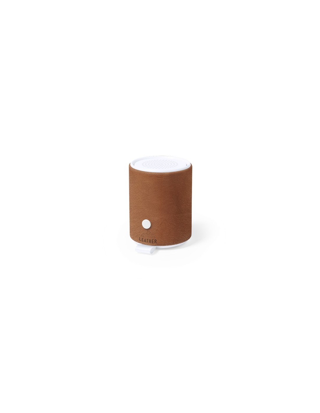 Altavoz Bluetooth con carcasa fabricada en RABS y forrada en cuero reciclado.Con 3W de potencia y batería de 400 mAh. Conexión Bluetooth 5.0, con ranura para tarjeta micro SD y base antideslizante. Incluye cable cargador Tipo C y manual de instrucciones en español e inglés. Presentado en caja individual de diseño kraft.El material RABS o ABS Reciclado y el cuero reciclado proceden del reciclado de artículos al final de su vida útil. Los materiales reciclados empleados incorporan la certificación RCS, que garantiza el origen reciclado de los mismos. Conexión Bluetooth. Potencia Sonido 3W. Batería 400 mAh Composition : Cuero Reciclado/ ABS Reciclado.