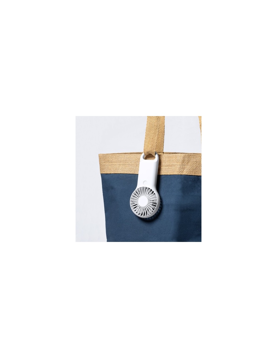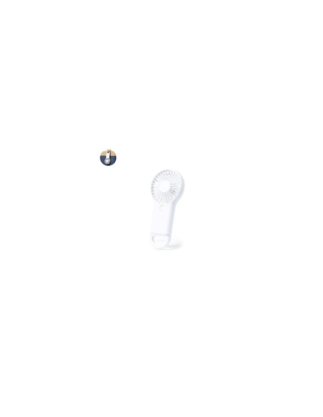 Ventilador fabricado en resistente ABS de color blanco, con mosquetón de enganche integrado. Con 2 velocidades de funcionamiento y presentado en caja individual de diseño kraft. Alimentación a pilas (3xAAA no incluidas). 2 Posiciones. 3 Pilas AAA No Incluidas