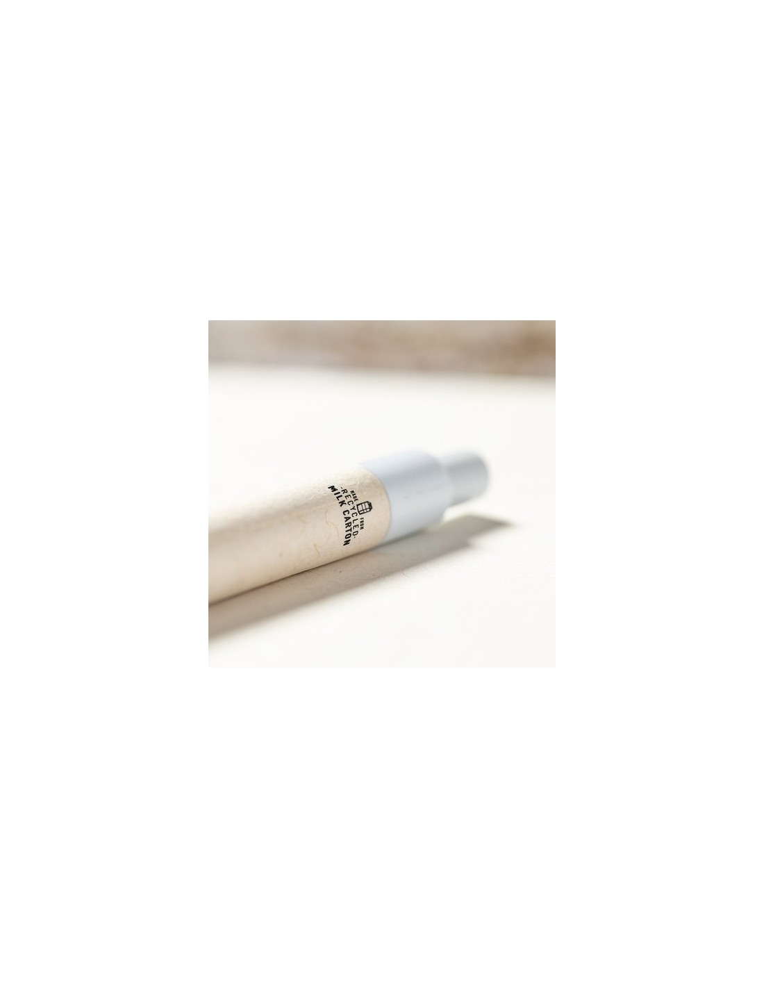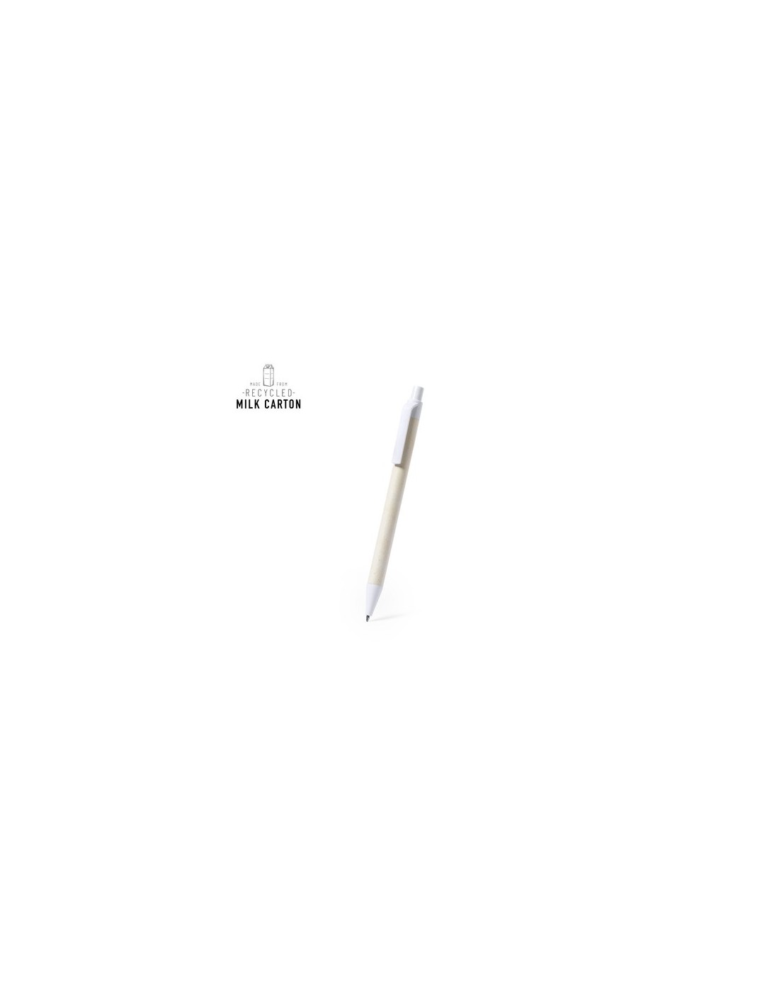 Bolígrafo de línea nature, con cuerpo fabricado con cartones de leche reciclados y detalles en color blanco. De mecanismo pulsador y en tinta azul, con distintivo cartón de leche reciclado en el cuerpo. Los cartones de leche se componen en su mayor parte de cartón y aluminio. Durante su proceso de reciclado, se separan los distintos materiales del envase para su reutilización y nuevo uso, contribuyendo así a recorrer el camino infinito de la economía circular. Este material se caracteriza por su alto grado de reciclabilidad, así como por su ligereza y resistencia. Composition : Cartones de Leche Reciclados.