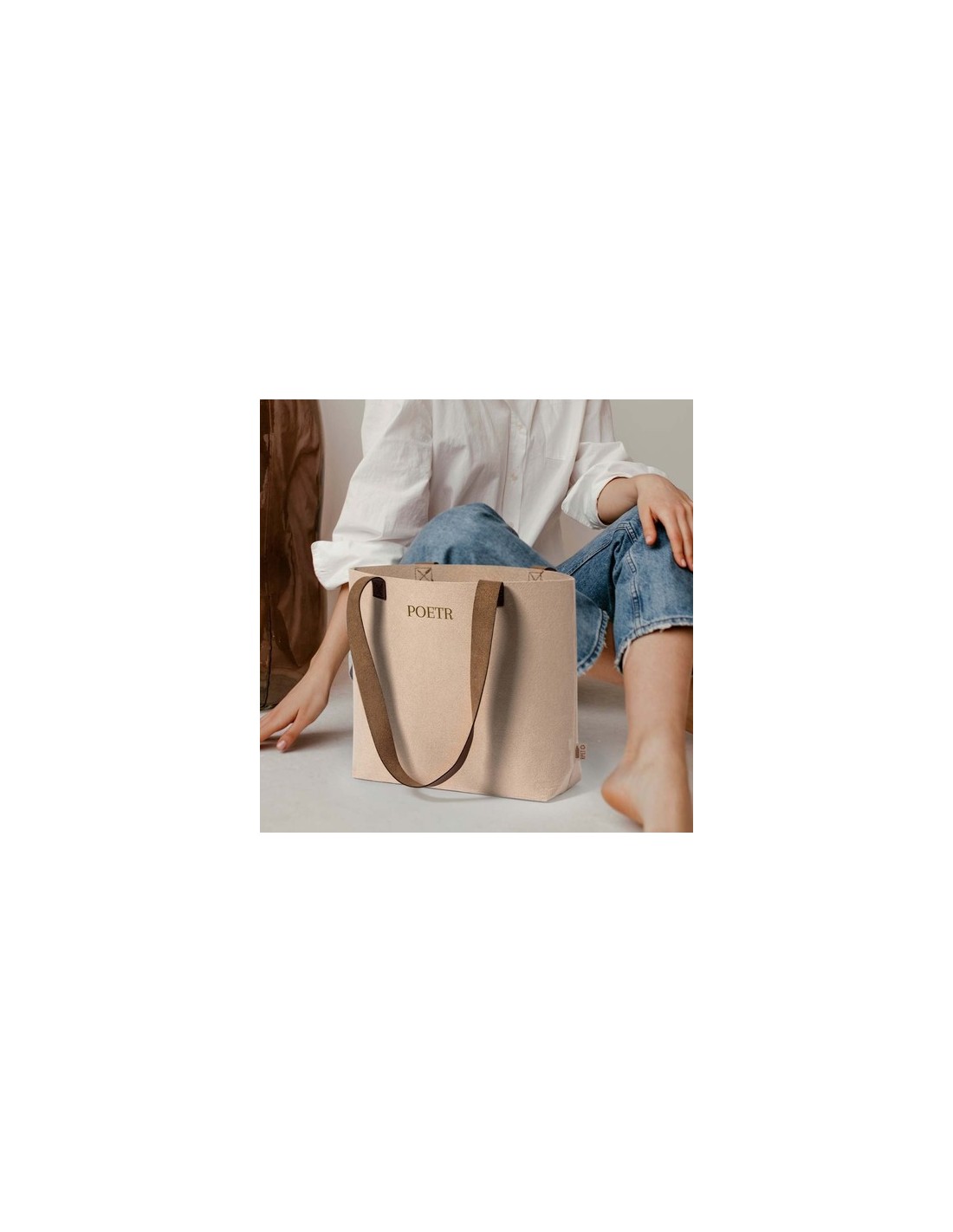 Bolsa de línea nature fabricada en fieltro RPET, con asas largas reforzadas (70 x 3 cm) en polipiel de tono marrón. De acabado cosido y con fuelle en base, con cuerpo disponible en color gris y natural. Etiqueta exterior con distintivo RPET. Resistencia hasta 6 kg de peso.El fieltro RPET es fruto de la combinación del proceso de reciclaje de materiales plásticos junto con la técnica milenaria de fabricación del fieltro, dando como resultado un material de eco-tendencia que, además de ser de origen reciclado, también se convierte en reciclable. Composition : Fieltro RPET/ Polipiel.