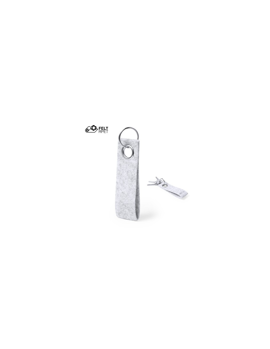 Elegante llavero con cinta fabricada en fieltro RPET y ojal metálico cromado. Con distintivo fieltro RPET en la cinta y anilla metálica cromada. El fieltro RPET es fruto de la combinación del proceso de reciclaje de materiales plásticos junto con la técnica milenaria de fabricación del fieltro, dando como resultado un material de eco-tendencia que, además de ser de origen reciclado, también se convierte en reciclable. Composition : Fieltro RPET.