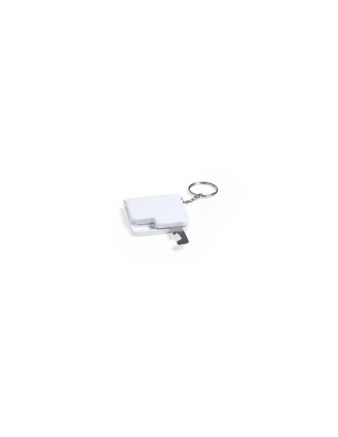 Flexómetro 1 m en resistente ABS blanco, con abridor metálico integrado en cuerpo. Con amplia superficie de marcaje y anilla metálica cromada. Hoja con medidas en centímetros y pulgadas