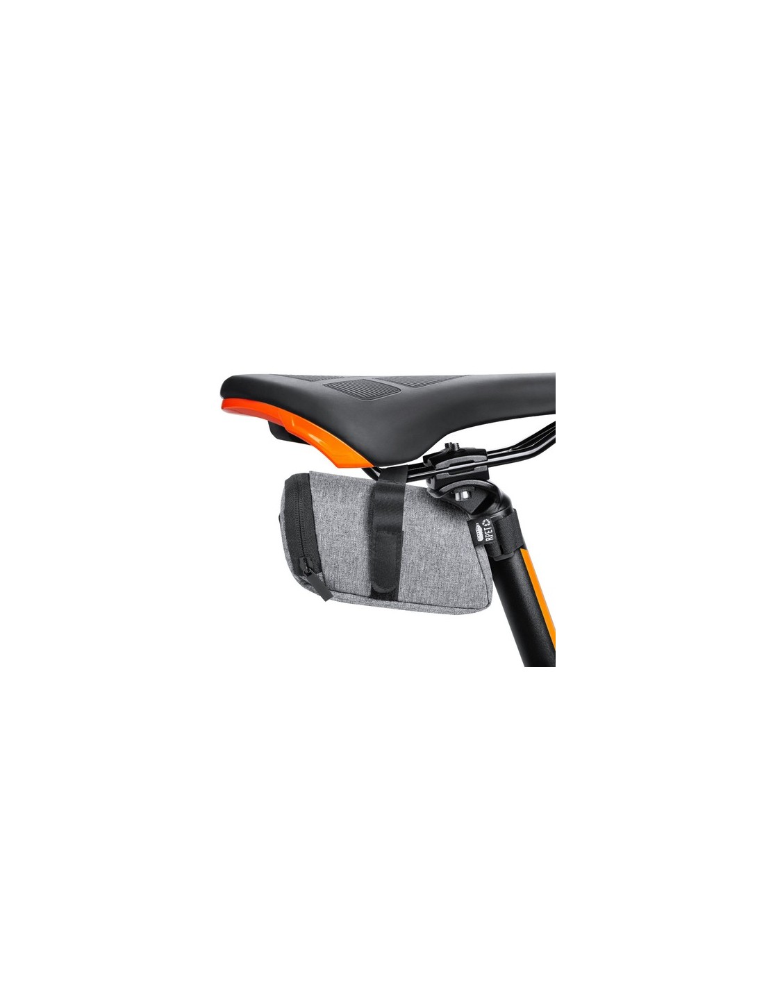 Bolsa para sillín fabricada en resistente 600D RPET. De acabado gris jaspeado.con ribetes de refuerzo y compartimento principal con cierre de cremallera. Incluye doble cinta de ajuste en barra y sillín con cierre de velcro. Con distintivo RPET en etiqueta exterior.El material RPET se elabora a partir de plástico reciclado, para así fomentar la reutilización de residuos plásticos y ayudar a la sostenibilidad del planeta. Acolchada Composition : Poliéster 600D RPET.