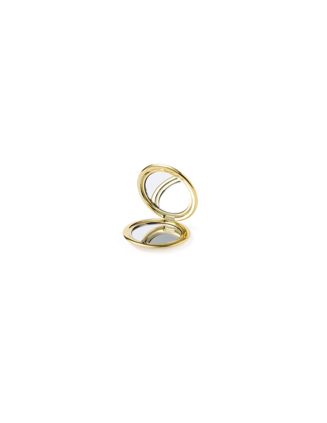 Espejo plegable en elegante acabado metalizado. Con dos espejos interiores (1X y aumento 2X), disponible en colores dorado, plateado y oro rosa. 1 Aumento 2X