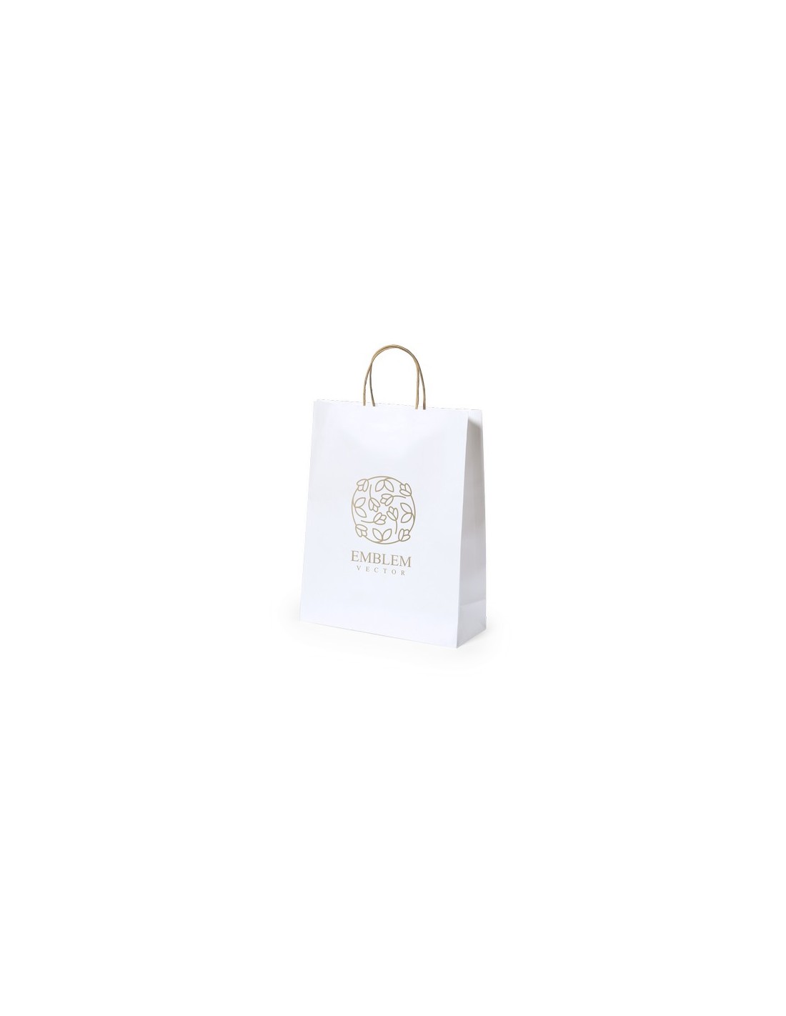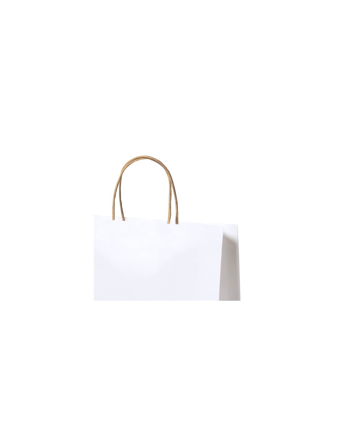 Bolsa de línea nature, fabricada en papel reciclado acabado en blanco de 100g/m2, con asas cortas reforzadas en tono natural y fuelle. Resistencia hasta 6 kg de peso. Composition : Papel Reciclado 100 g/ m2.