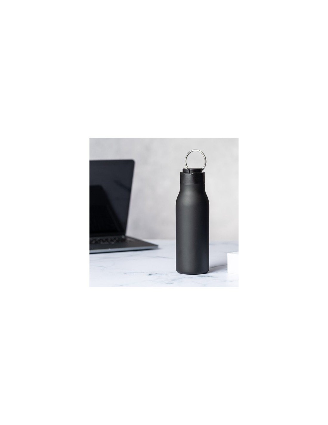Bidón de 600 ml de capacidad, fabricado en acero inox. Tapón a rosca a juego libre de BPA, con anilla de transporte integrada, plegable y de acabado cromado. Disponible en variada gama de colores satinados y presentado en caja individual de diseño kraft.Disponible manual de instrucciones en español e inglés. 600 ml Composition : Acero Inox.