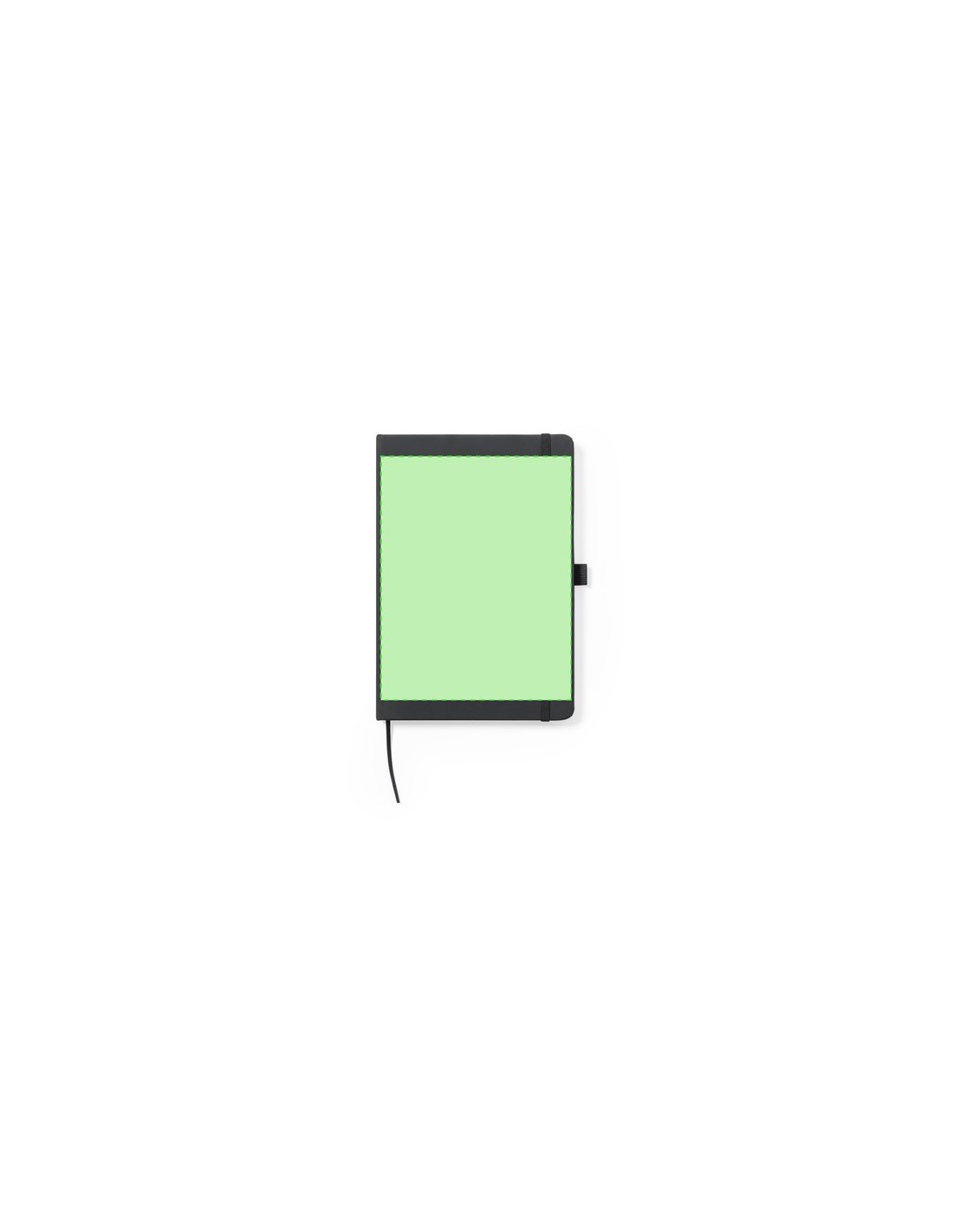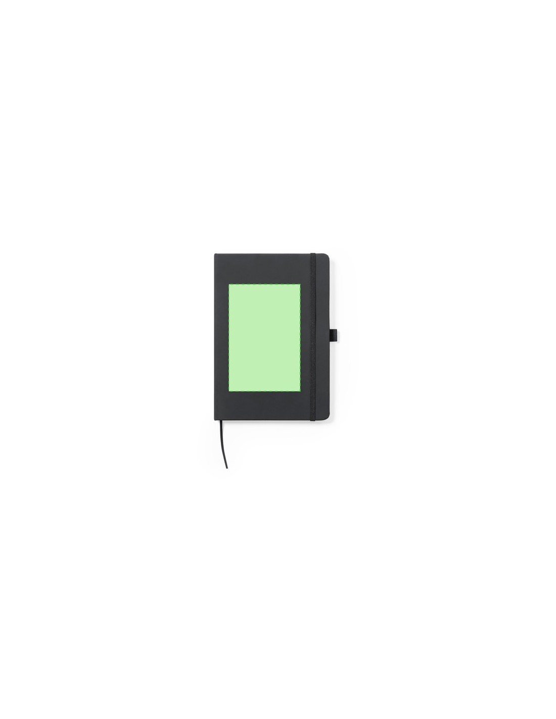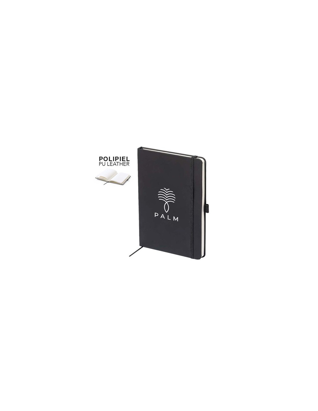 Bloc de notas fabricado en polipiel de elegante acabado en negro. Con tapas duras, marcapáginas y elástico de sujeción a juego. Interior con 100 hojas de disposición a 1 raya y soporte para bolígrafo (bolígrafo no incluido). Portada Rígida. 100 Hojas Composition : Polipiel.
