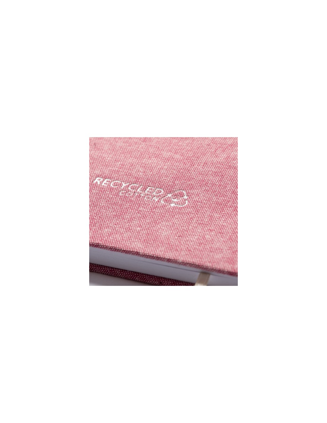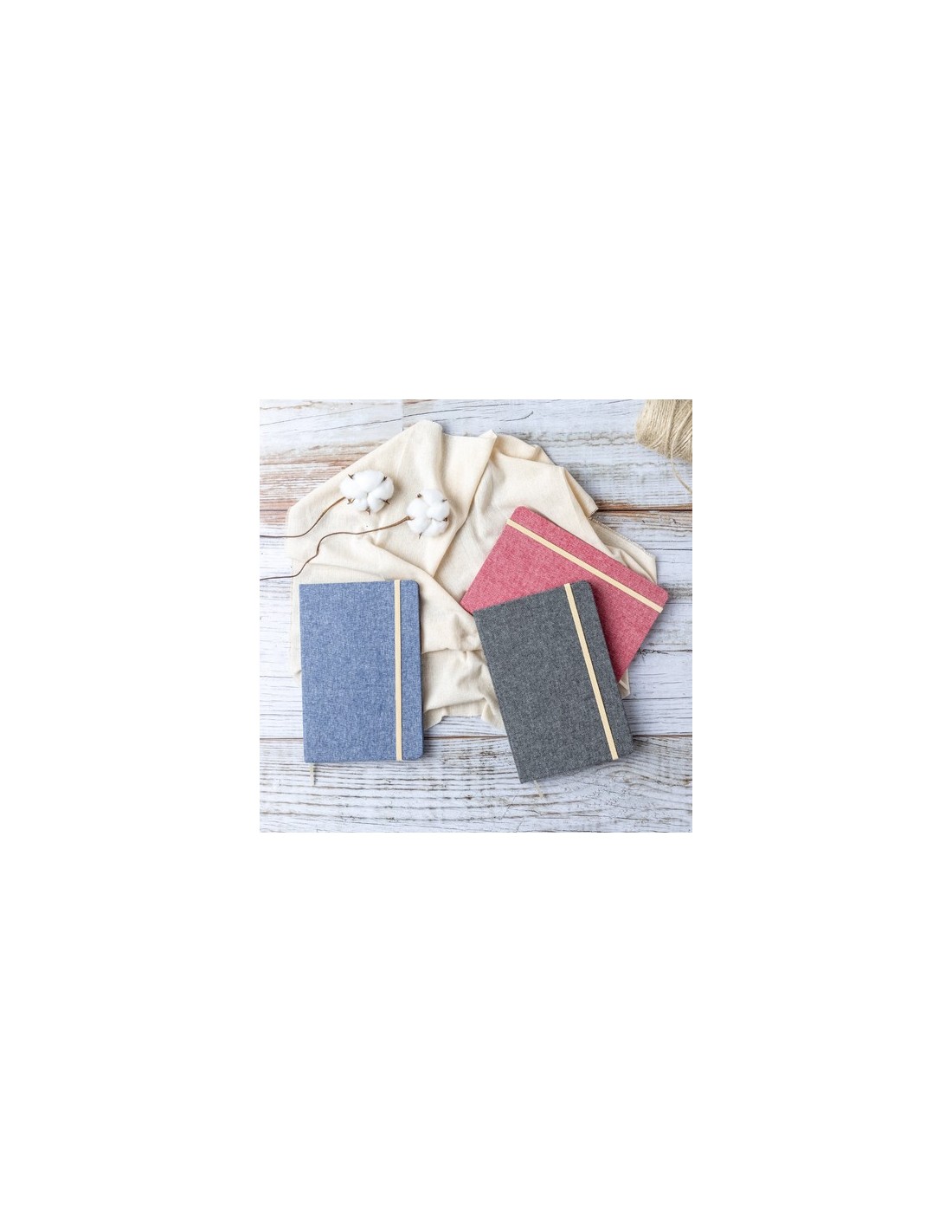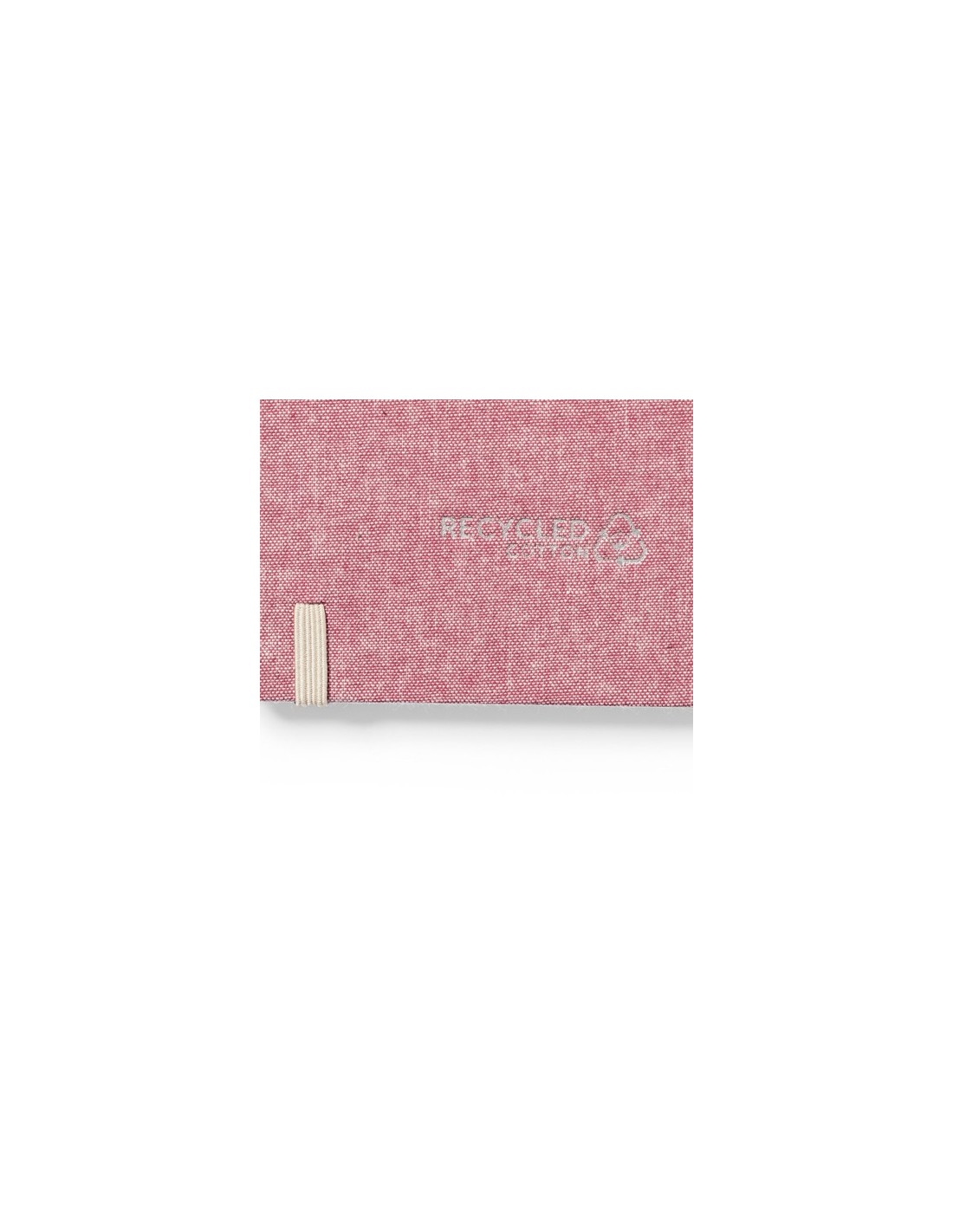 Bloc de notas de línea nature fabricado en 100% algodón reciclado. Con tapas duras y elástico de sujeción en contraste. Interior con 100 hojas lisas y marcapáginas de tela. Disponible en amplia gama de colores, con distintivo algodón reciclado en la contraportada. Certificación GRS (Global Recycled Standard / Estándar de Reciclaje Global), que garantiza el origen reciclado del material usado para fabricar el producto Portada Rígida. 100 Hojas Composition : 100% Algodón Reciclado.