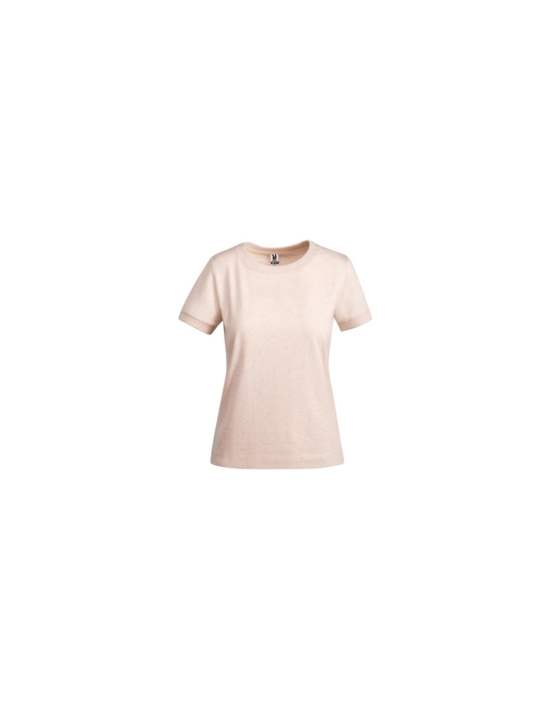Camiseta gruesa de mujer en manga corta de algodón. Cuello redondo y ribete mangas en canalé ancho 2x1. Cubrecosturas reforzado en cuello. Costuras laterales. Logo Roly a tono en bajo lateral izquierdo. Costura ancha en el bajo. * Etiqueta removible* Duo concept Composition : 100% algodón, 210 g/m²