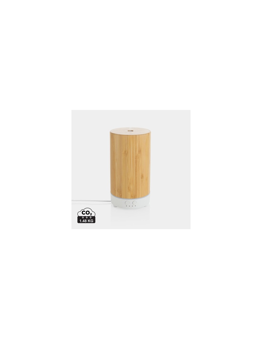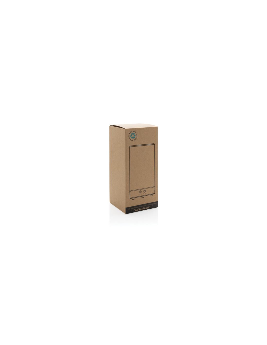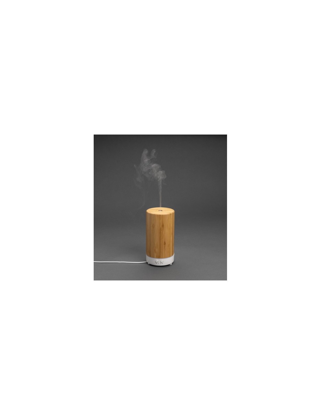 Difusor/humidificador de aroma fabricado con ABS/PP reciclado certificado RCS (Recycled Claim Standard) y FSC® 100% bambú. Contenido reciclado total: 38 % basado en el peso total del artículo. La certificación RCS garantiza una cadena de suministro completamente certificada de los materiales reciclados. Indicado para añadir gotas de aceites esenciales al depósito de agua. Incluye cable de carga tipo C de 100 cm fabricado con TPE reciclado certificado por RCS Embalado en caja de papel kraft mixto FSC®. Material : ABS reciclado, FSC® bambú Recycled Content Percent : 38 Conforme directiva Electromagnética 2014/30/EU, Conforme directiva de sustancias peligrosas 2011/65/EC & 2015/863, Conforme PAHS content in Reach & ZEK 01-4-08, Conforme directiva Phtalate content, Libre de parafinas cloradas de cadena corta y media., certificado de Recycled Claim Standard, La certificación de gestión forestal del FSC confirma que el bosque se gestiona de forma que se preserva la diversidad biológica y se beneficia la vida de la población y los trabajadores locales, al tiempo que se garantiza la viabilidad económica, Conforme directiva bajo voltage 2014/35/EU WEEE Packaging : Caja de regalo All print codes : CO2 Engraving 2,Pad Print - Print code default : Grabado CO2 - parte frontal del artículo - 40 x 110 mm - max color : 1 Social Audits : BSCI Total CO2 emissions : 1,48.