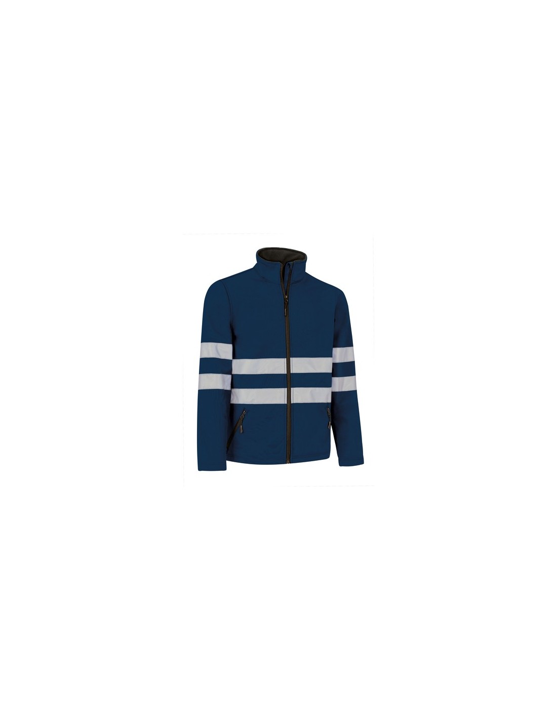 Chaqueta softshell de Visibilidad Realzada.Confeccionada en tejido softshell elástico de tres capas con efecto cortavientos, hidro-repelente y alta retención térmica, incluye dos cintas retro-reflectantes cosidas en torso, espalda y mangas para mayor seguridad.Prenda certificada como EPI de Categoría II de Visibilidad Realzada en base a las normas 13688 y 17353, tipo B3 para visibilidad nocturna, con duración máxima de 25 lavados.Cuello alto de doble capa con cierre de cremallera central que incluye protector de barbilla para mayor calidez y confort.Puños rectos, cintura con cordón elástico y freno para mejor ajuste y dos bolsillos oblicuos con cierre de cremallera para tener todo accesible.Métodos idóneos de marcaje: bordados, cosidos y termo-adhesivos anti-sublimación.Ideal como ropa laboral y uniformes de trabajo. Composición : 85% poliester 10% poliuretano 5% elastano
