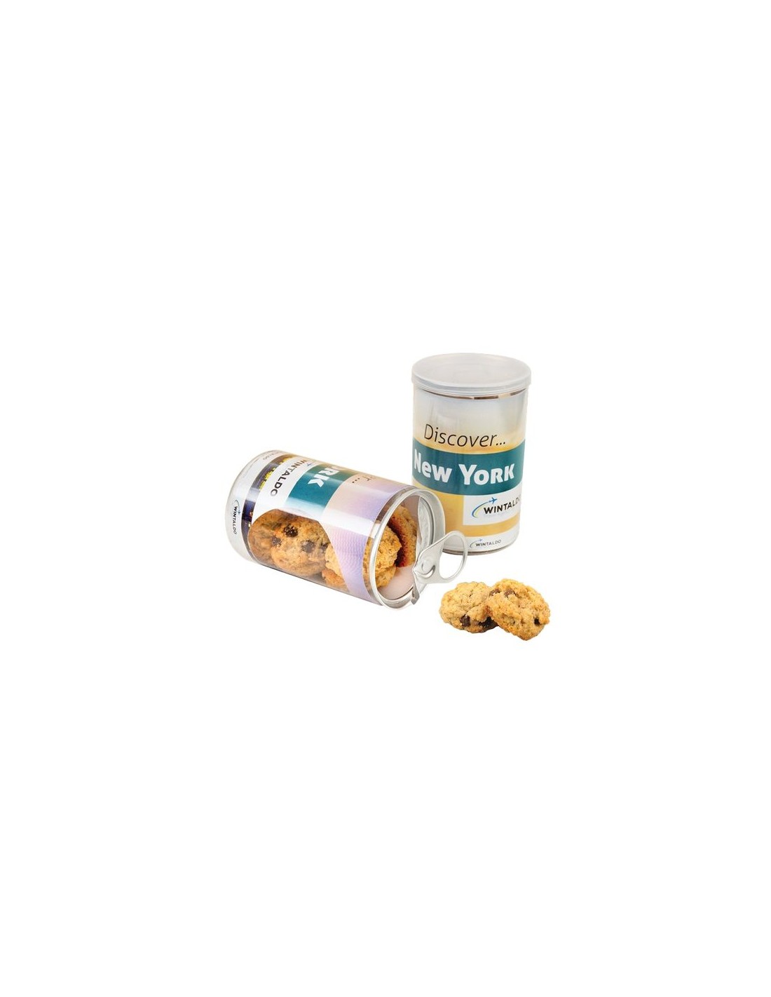 contenido : mini GALLETAS de avena con pépites de chocolate 40 g, o GALLETAS de chocolate especiadas blanco, con leche y negro 70 g.Opciones de producto : color de la etiqueta: blanco.Inforomación adicional : caramelos emballés dans une feuille transparentee compostable, envasado en film PET 100% recyclable.Dimensiones : ø 55 mm, h 88 mm.Cantidad Mínimo : 200 piezas.Fecha de caducidad mínima : caramelos: 12 meses, bryzels, mini galletas de chocolate : 6 meses, mini GALLETAS de avena : 4 meses.Tipo de impresión : digital.