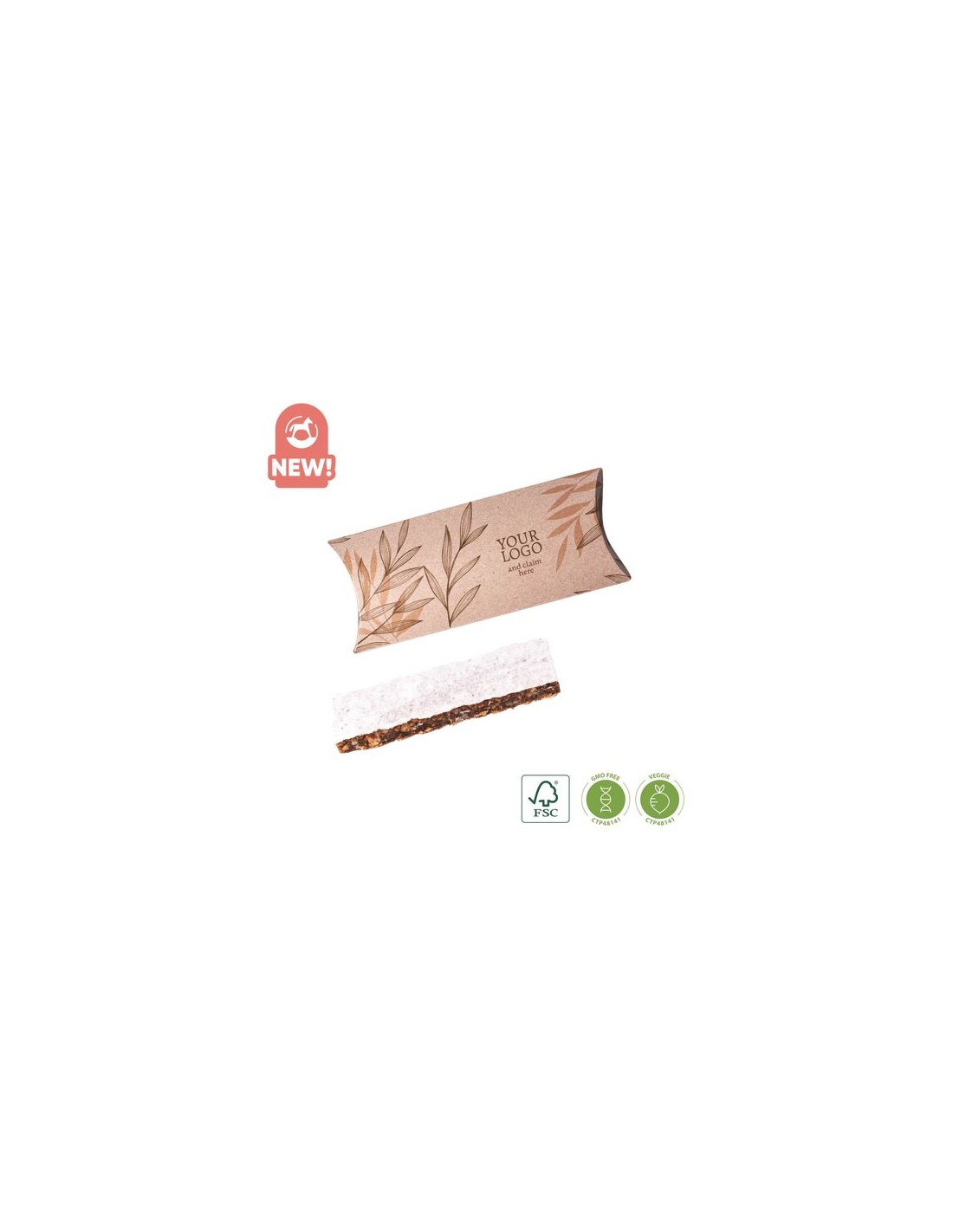 contenido : barre de frutas 23 g.Saboro : frutos del bosque.Opciones de producto : papel blanco de serie, papel kraft elección opcional, papel blanco o kraft.Dimensiones : 160 x 70 x 18 mm.Cantidad Mínimo : 200 piezas.Fecha de caducidad mínima : 6 meses.Tipo de impresión : digital.