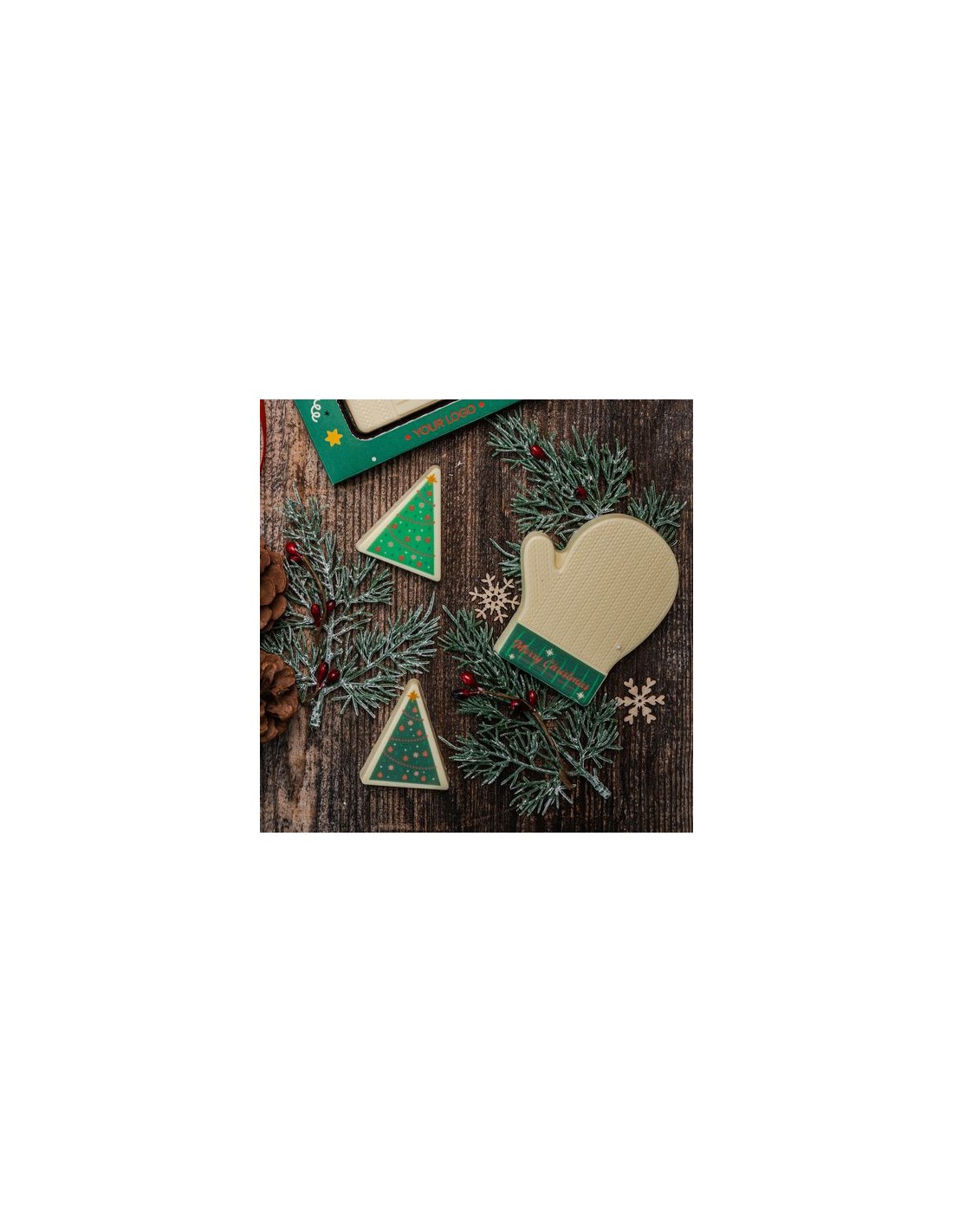 contenido : chocolate con personalización 65 g.Saboro : chocolate blanco 36% manteca de cacao.Opciones de producto : papel blanco o kraft.Inforomación adicional : en option chocolate a deux coches blanco y con leche (a pedido individual), moldeado en R-PET (PET reciclado), papel blanco de serie, papel kraft elección opcional, posibilidad de personalizar el envase y el chocolate (elemento gráfico en el chocolate).Dimensiones : 135 x 137 x 15 mm.Cantidad Mínimo : 100 ejemplares.Fecha de caducidad mínima : 8 meses.