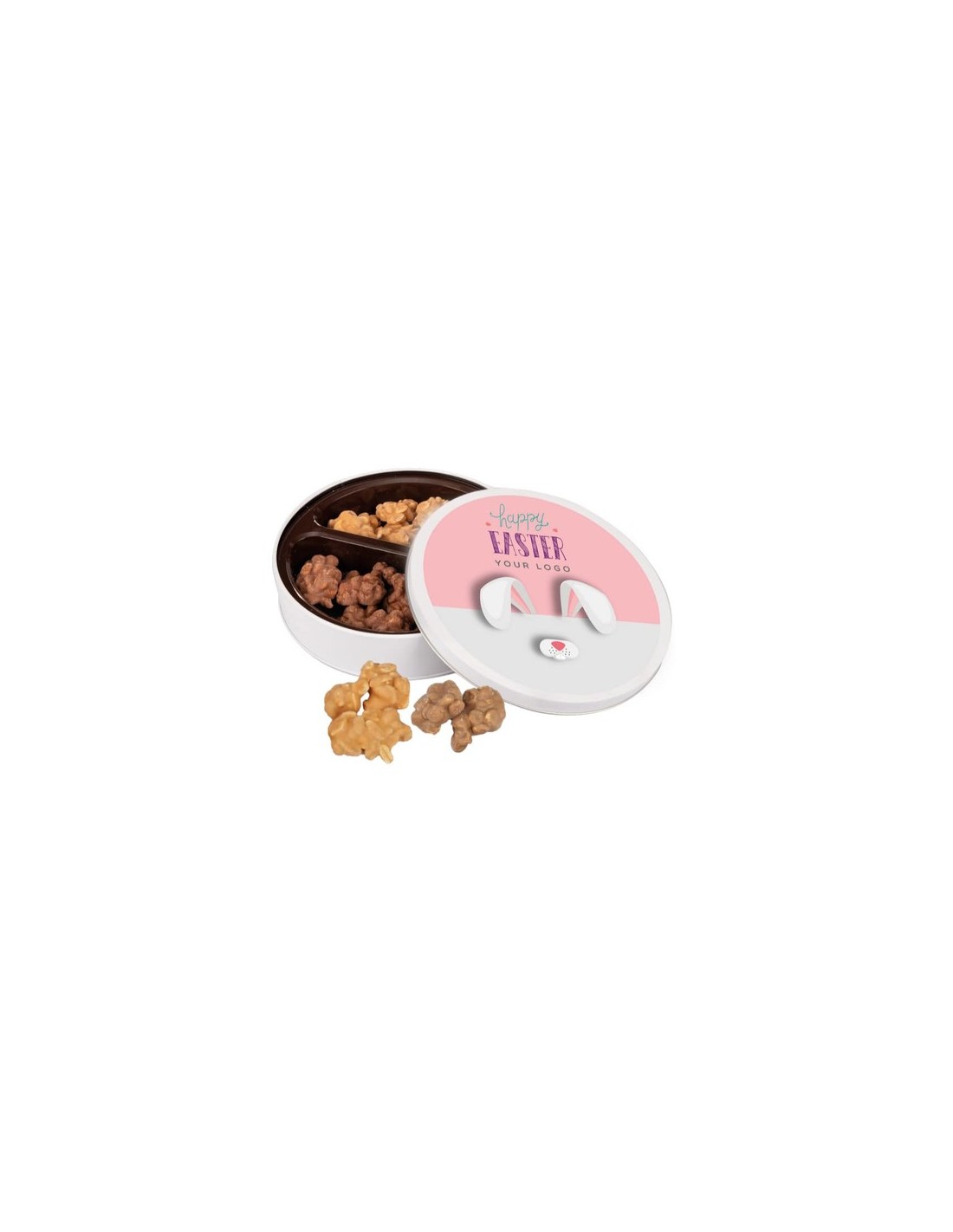 contenido : figurine de reno en chocolate a assembler (90 g en total).Opciones de producto : color de la caja métallique: blanco, etiqueta blanca o kraft, tipo de personalización : etiqueta o impresión directe sur la lata.Inforomación adicional : caja metálica reutilizable según el principio de "residuo cero"., etiqueta en papel blanco de serie, papel kraft elección opcional, moldeado en R-PET (PET reciclado).Dimensiones : Ø 190 mm, h 42 mm.Cantidad Mínimo : 50 ejemplares.Fecha de caducidad mínima : 6 meses.Tipo de impresión : directamente sobre la caja: digital, digital.