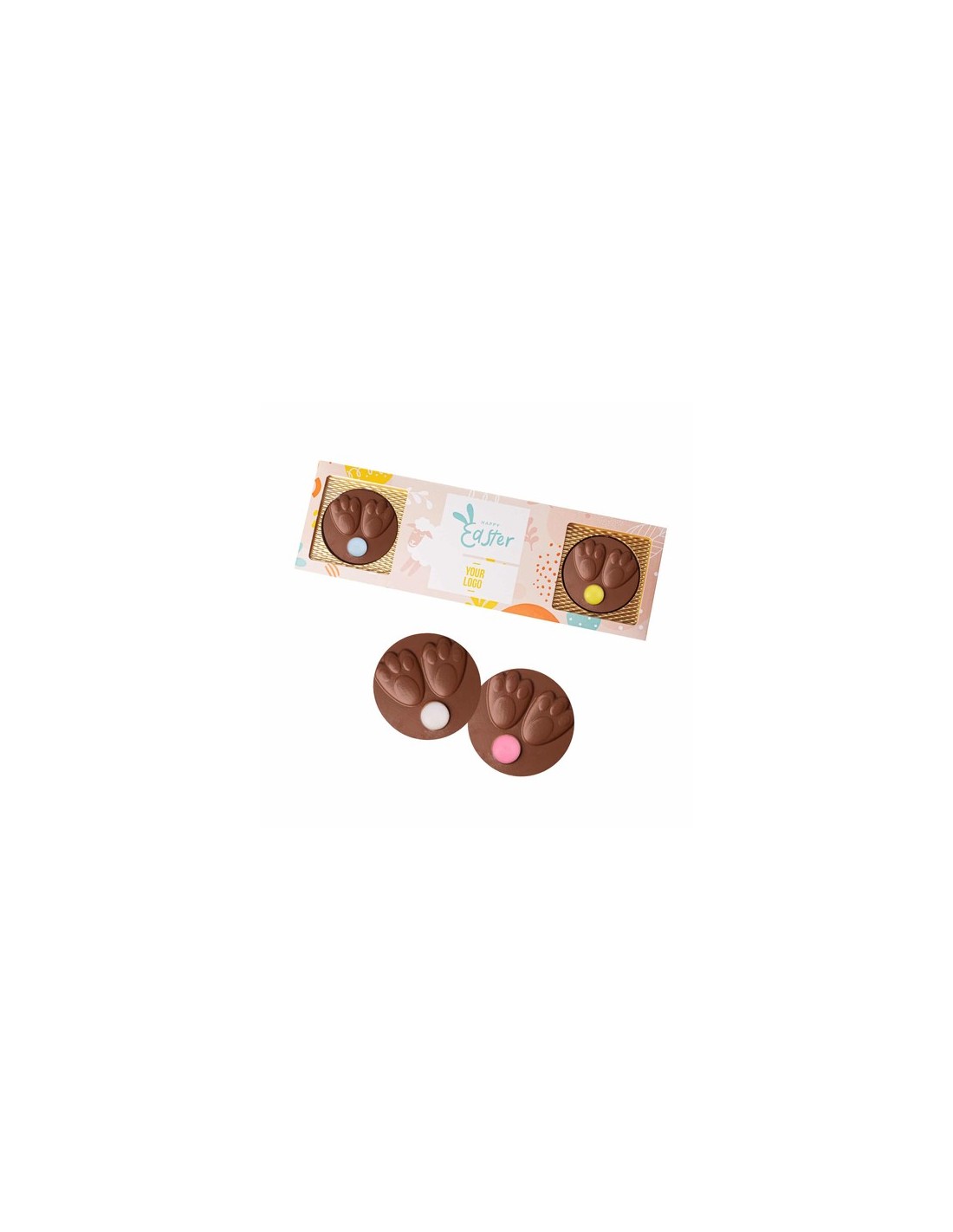 contenido : 4 chocolates (45 g en total).Saboro : chocolate con leche 33% cacao, chocolate blanco 36% manteca de cacao, chocolate negro 54% cacao, chocolate negro 72% cacao, chocolate rubí 47% cacao, chocolate Caramel Gold 40% cacao,.Opciones de producto : papel blanco o kraft.Inforomación adicional : color de las lentes: mezcla, moldeado en R-PET (PET reciclado), papel blanco de serie, papel kraft elección opcional.Dimensiones : 258 x 85 x 12 mm.Cantidad Mínimo : 100 ejemplares.Fecha de caducidad mínima : 8 meses.