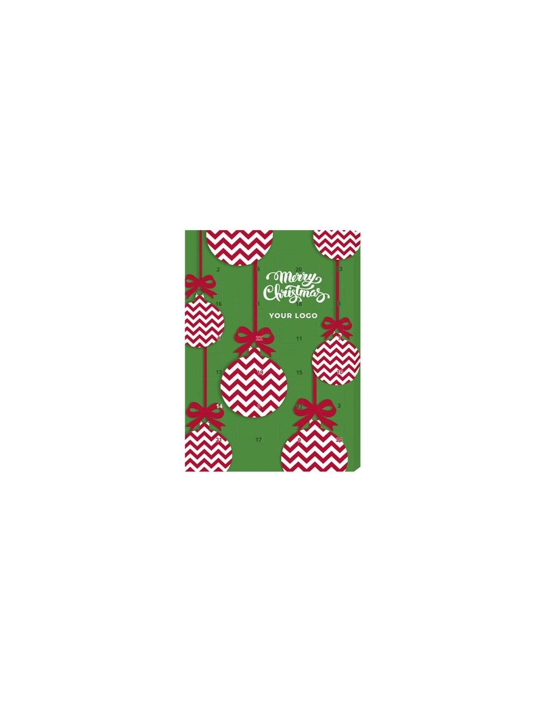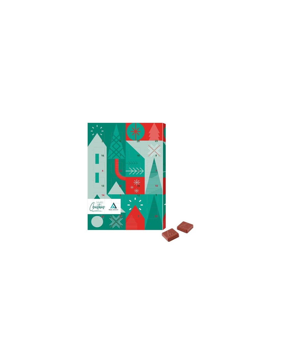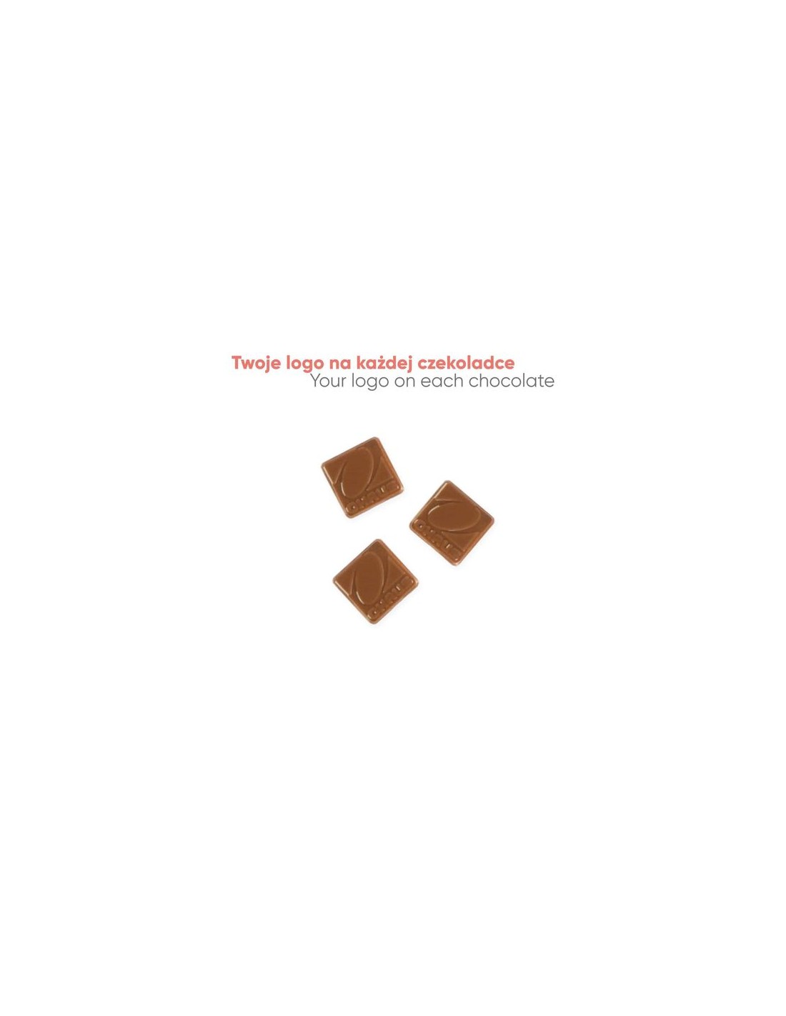 contenido : 24 chocolates (50 g en total)Saboro : chocolate con lecheOpciones de producto : impresión recto-verso, papel blanco, papel kraft o papel crudo con ajot de fibras de hierbaInforomación adicional : moldeado en R-PET (PET reciclado), papel blanco de serie, papel kraft o papel crudo con ajot de fibras de hierba elección opcional, posibilidad de personalizar el envasado y el chocolate (gofrado sobre el chocolate)Dimensiones : 197 x 284 x 10 mmCantidad Mínimo : 200 piezasFecha de caducidad mínima : 8 mesesTipo de impresión : digital.